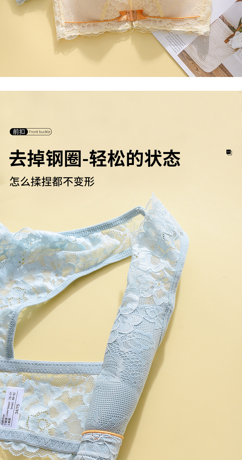クロスボーダーの新商品の前ボタンの下着の女性の小胸は薄いタイプのセクシーな無鋼の輪を集めて副乳の美背文のブラジャーのスーツを収めます。