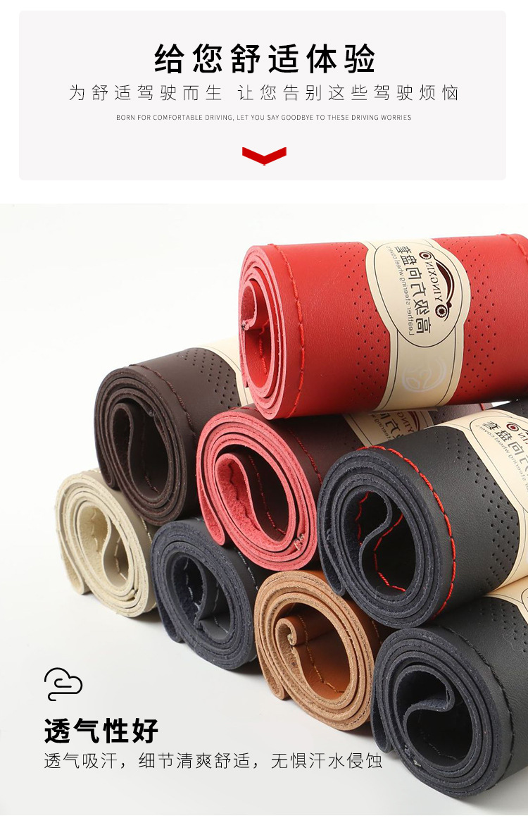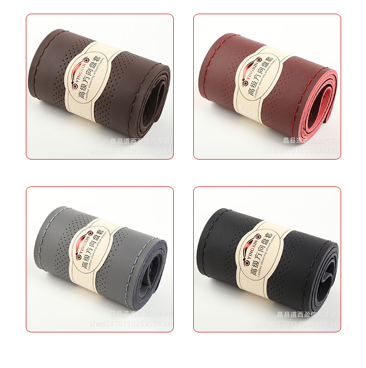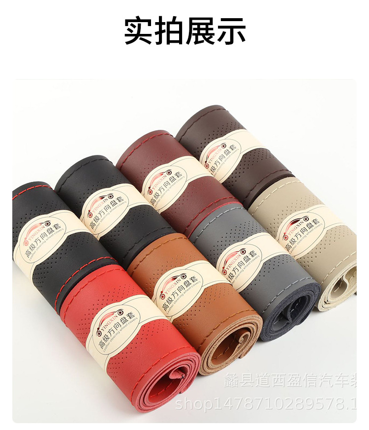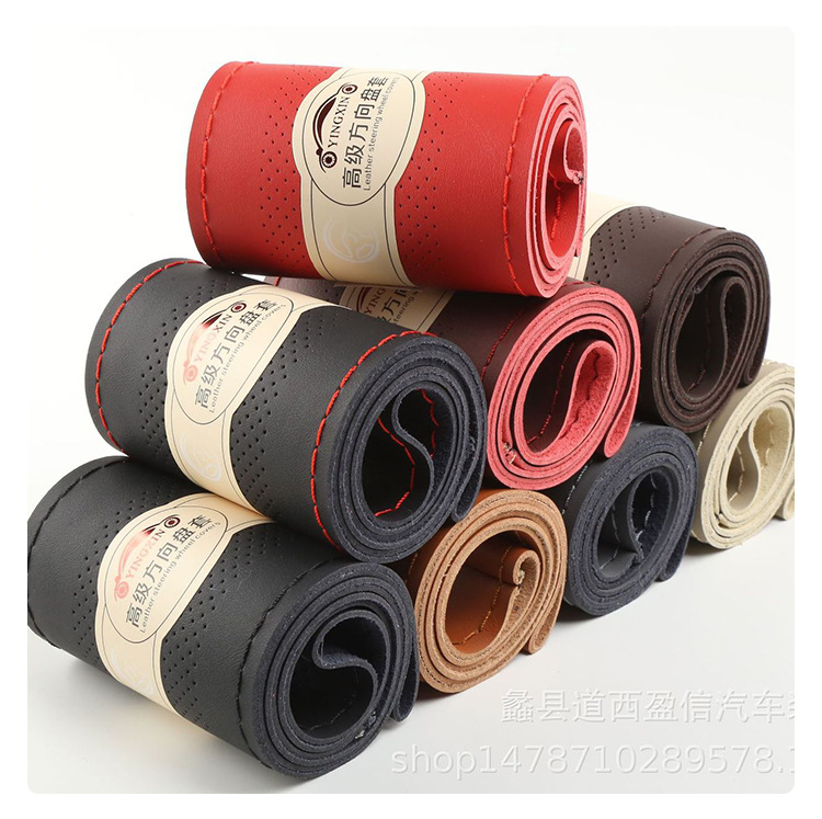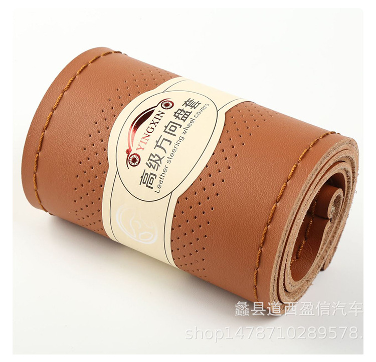 クロスボーダー卸売り茶ポリフェノールナパピハンドルカバー四季通用滑り止め手縫い車ハンドルカバー