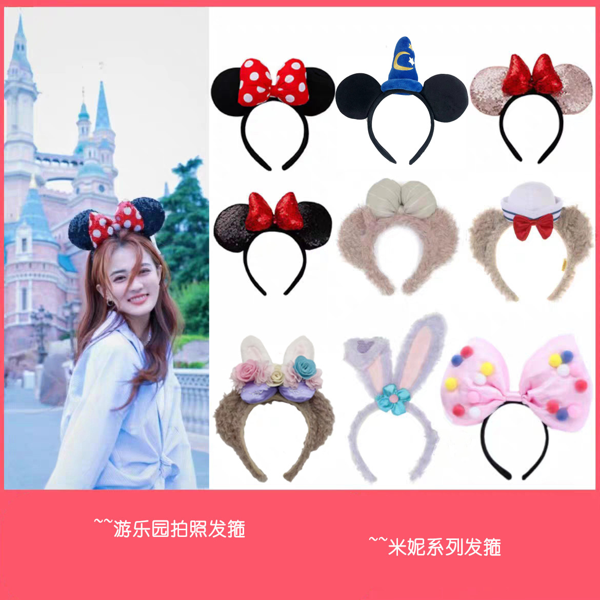 遊園地スパンコールミッキーとミニーの弓ヘッドバンド大人と子供用ウサギの耳ヘアピンヘアアクセサリープレスヘアヘッドドレス