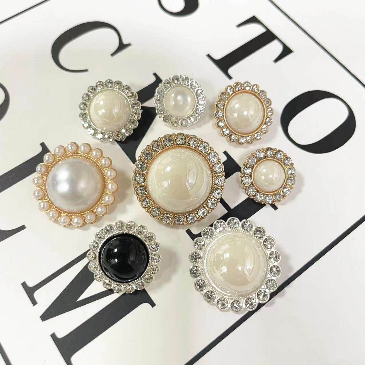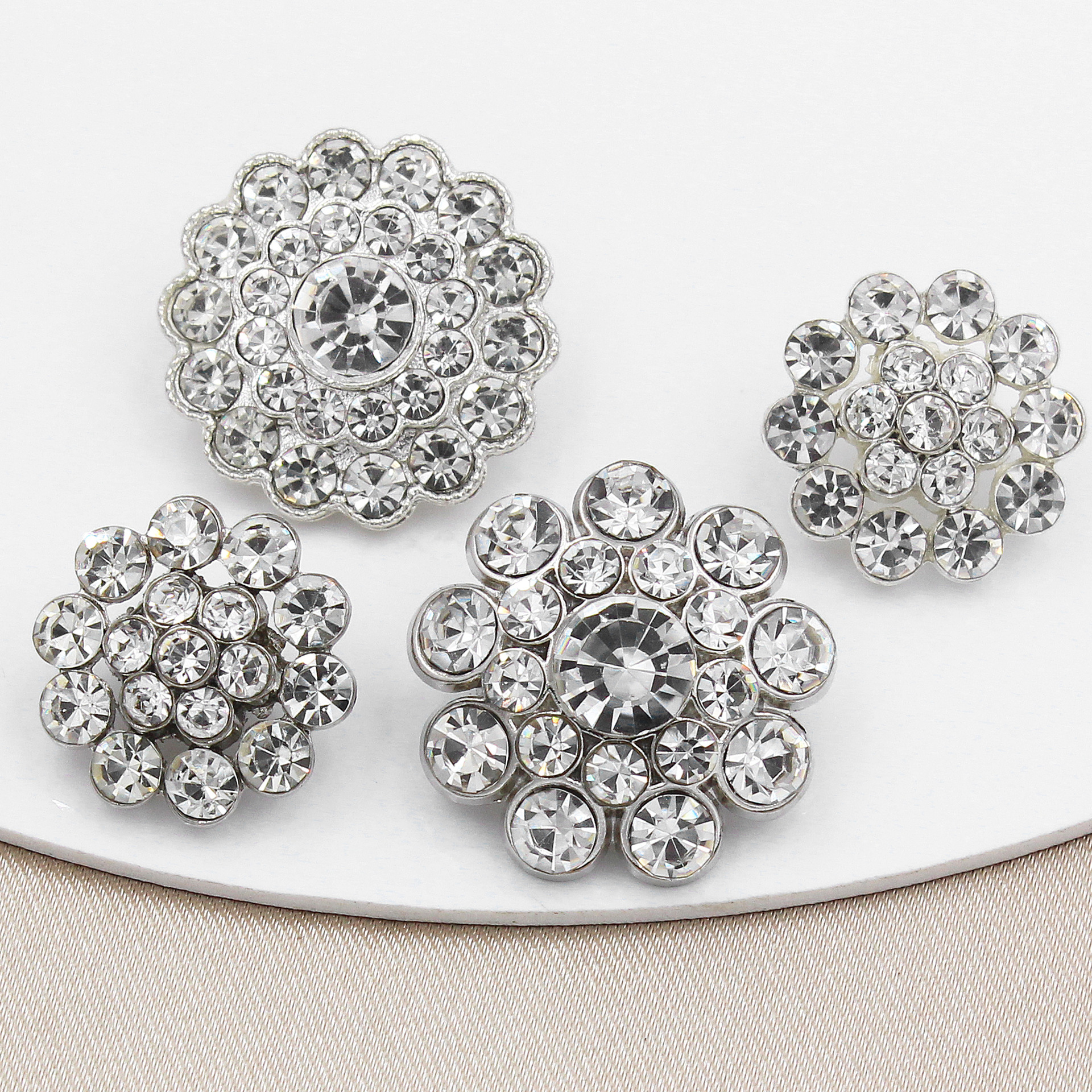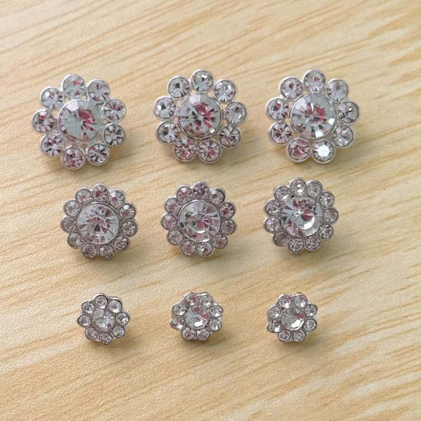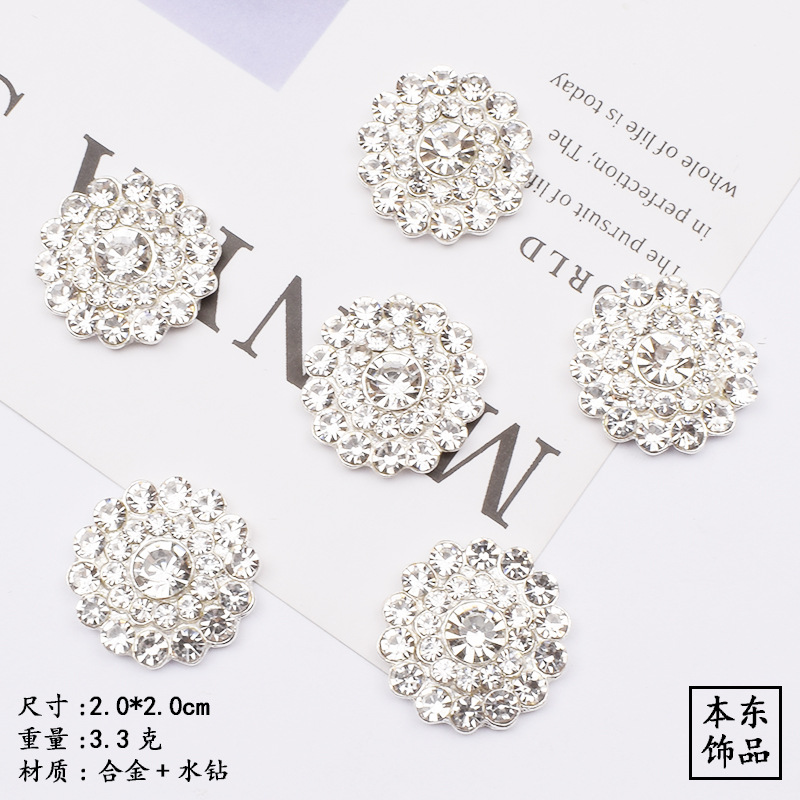 名称:小香风镶钻纽扣 材质:锌合金 颜色:银色 重量:1-3g