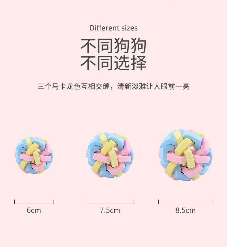 ペットの鈴のボールのおもちゃの現物の卸売りのマカロンの七色の発声は犬のおもちゃの歯ぎしりのおもちゃの七色のボールを指導します。