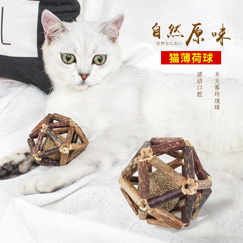 木の天のタデの精巧な玉は猫のミントの猫のおもちゃのボールを含んでいます。