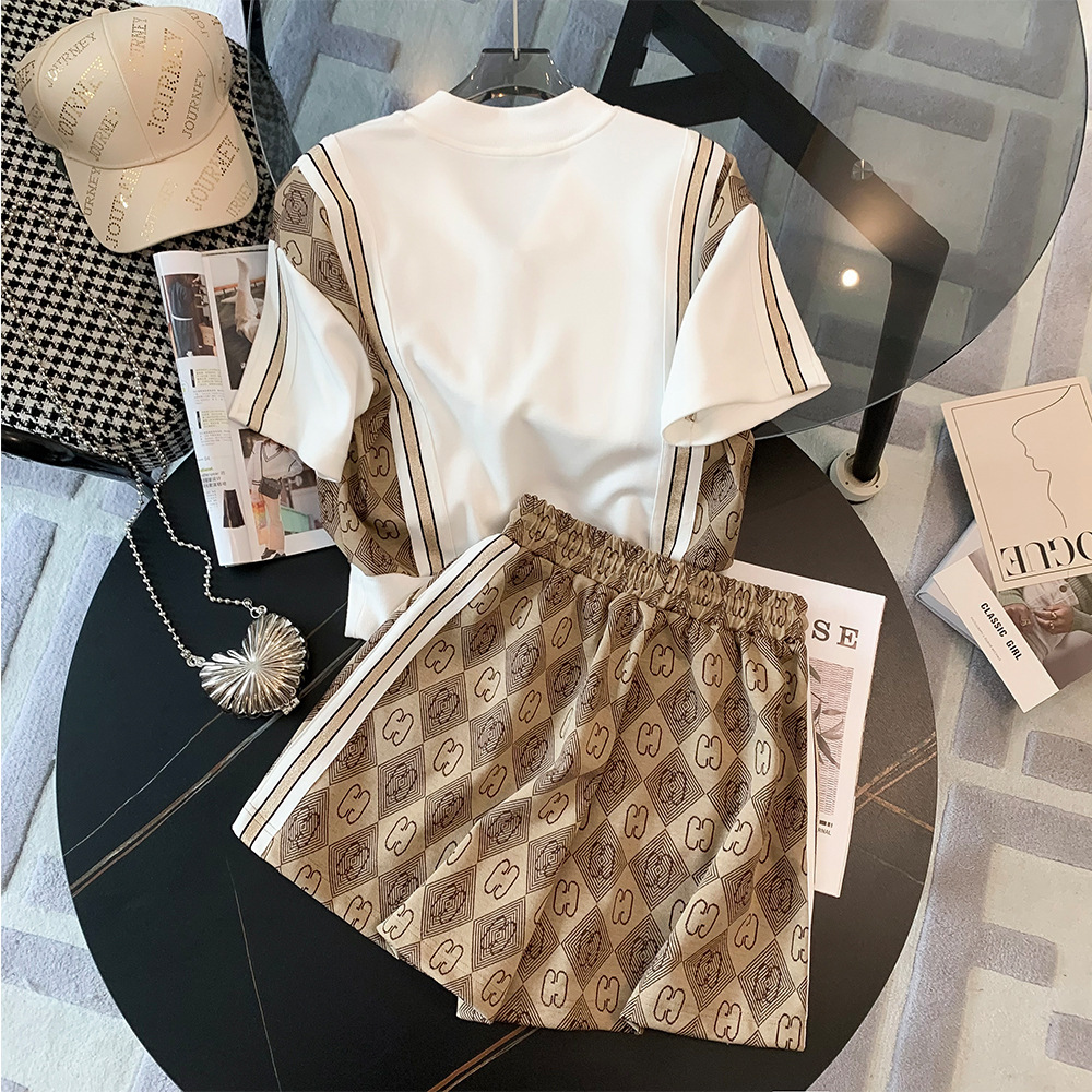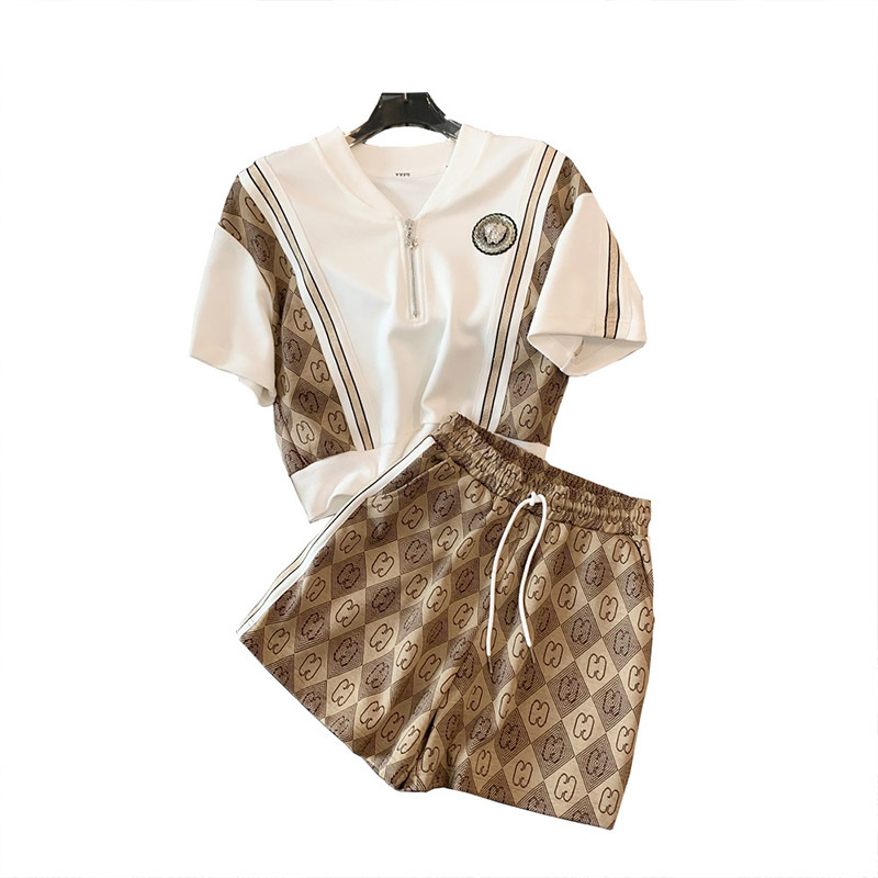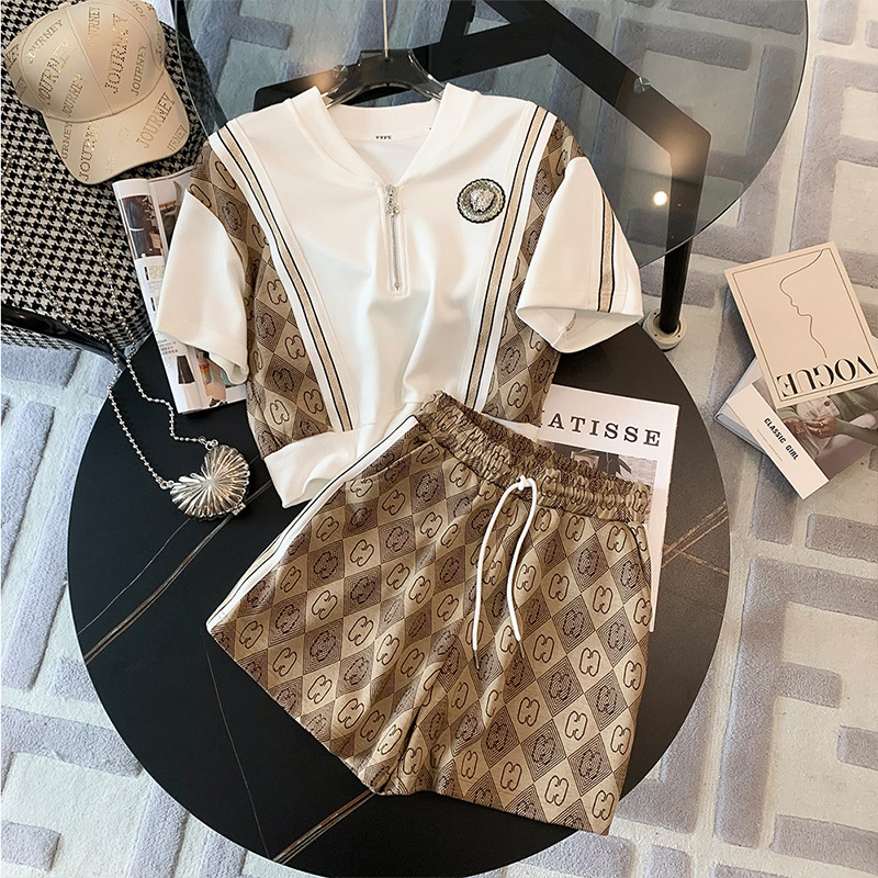 高級感カジュアルファッションスーツ女性夏の新型韓国版ゆるいファッション洋気減齢スポーツウェア2点セット