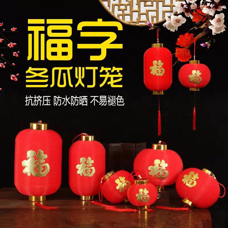 旧正月の新年の赤い提灯はプラスチックの紙の福を飾って財産を招きます。