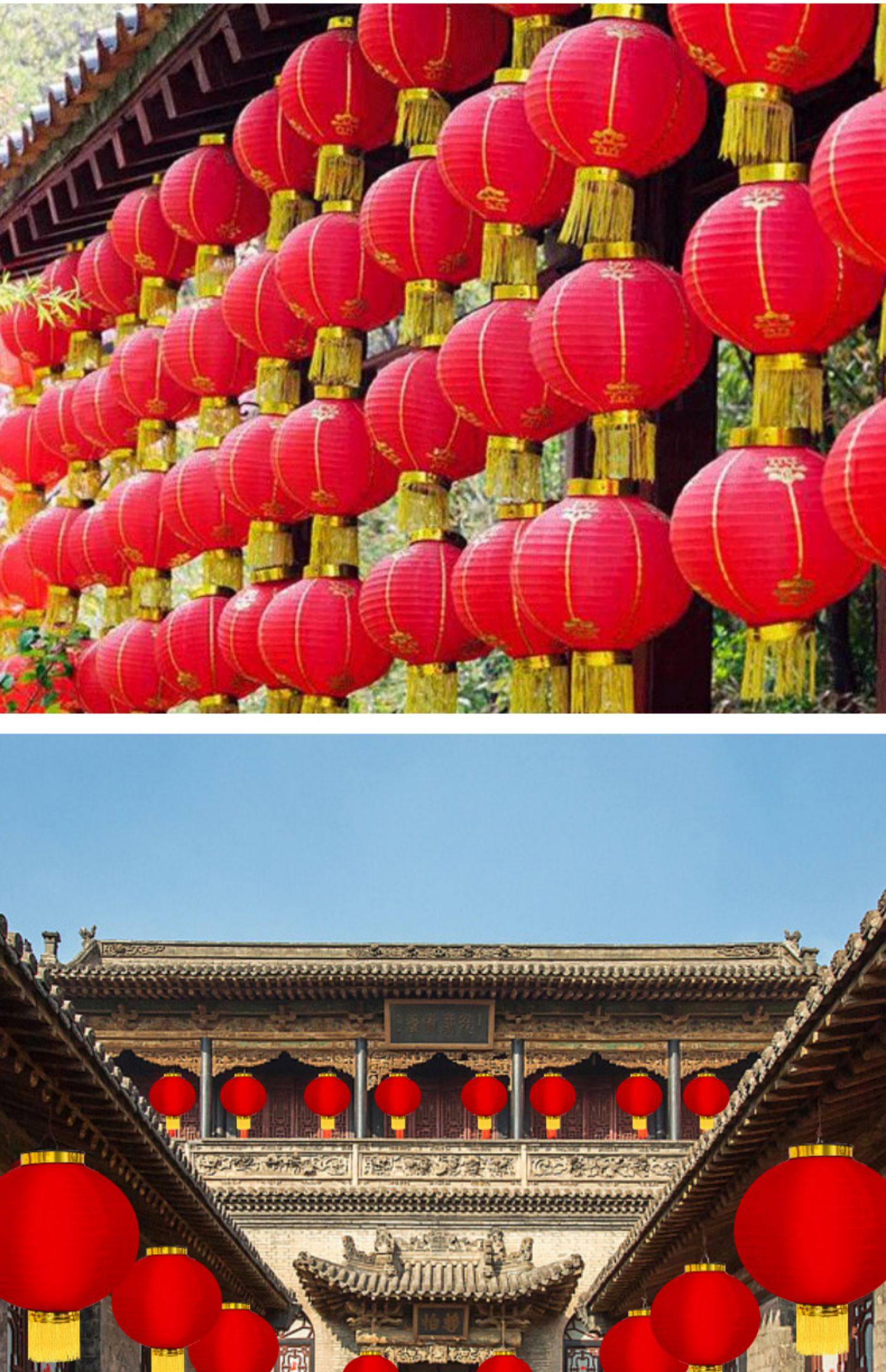 大紅灯籠串屋外防水三四五連の絹織物の折り畳み広告の糸引き提灯の新年のお祝いの装飾