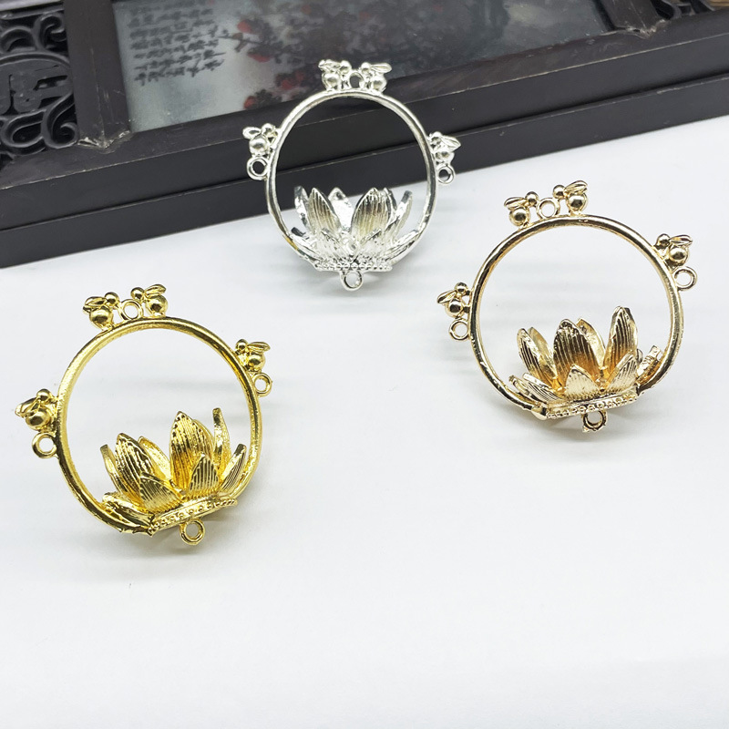 国風は玉の双穴の蓮の花の玉の樹脂のハスの花のdiy古風をまねて耳飾りのブレスレットのフリンジの材料の部品を飾ります。