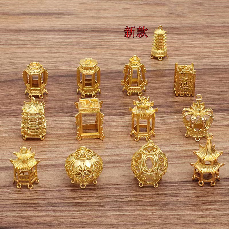 Diy中国式古風ヘアピン部品合金提灯部品立体凉亭漢服髪飾りペンダントメーカー卸売り