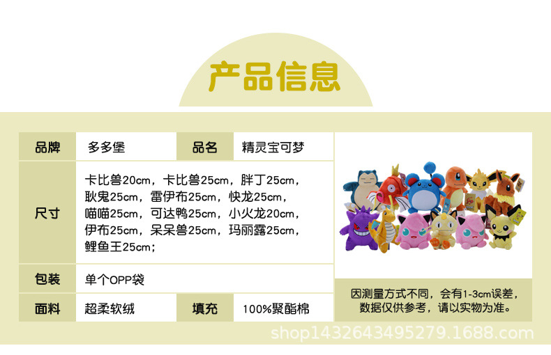 多多堡宝可梦系列可达鸭小火龙神奇宝贝玩偶公仔跨境毛绒玩具批发