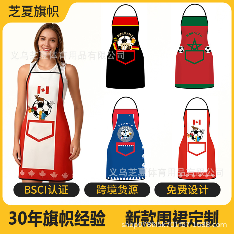 跨境亚马逊热卖世界杯围裙防水防油家居节日氛围装饰户外厨房罩衣