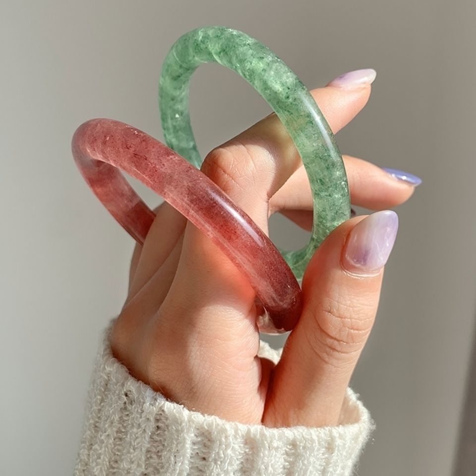 いちご結晶天然水晶ハトヘモグロビン緑細い丸ブレスレット雲母片金点グラデーション美美ブレスレット