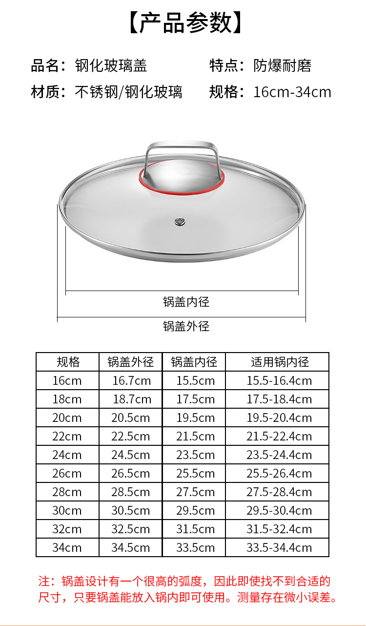 加厚钢化玻璃盖可视化透明G型盖不粘锅蒸锅汤锅家用炒锅通用锅盖