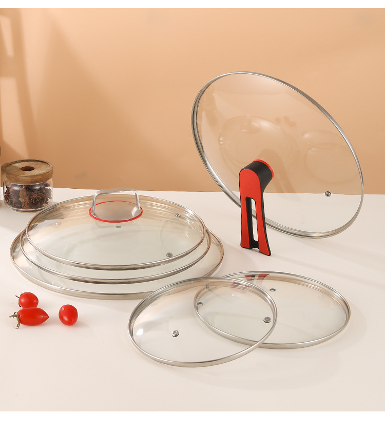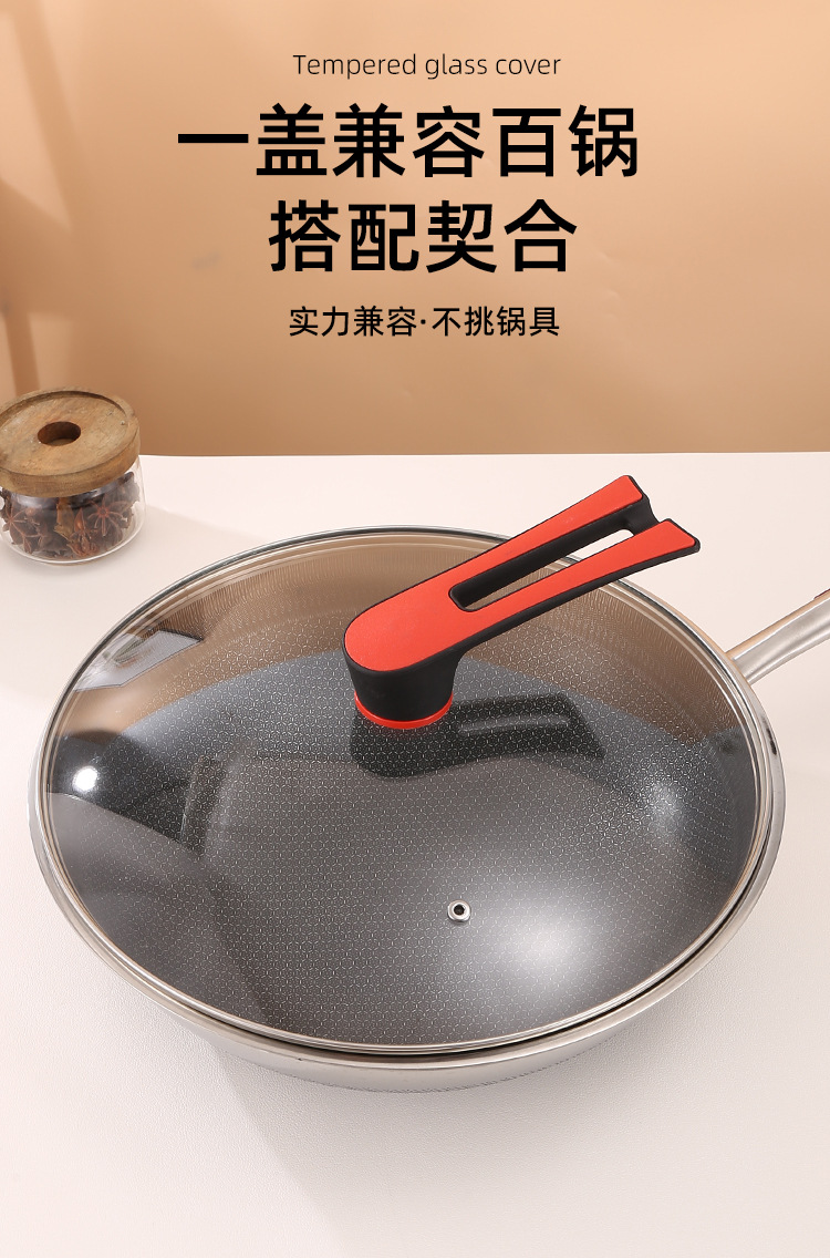 鍋の蓋の強化ガラスの蓋の食品級のステンレスの炒め鍋の蓋のフライパンの蓋の通用の炒め物の鍋の蓋はくっつかないです。