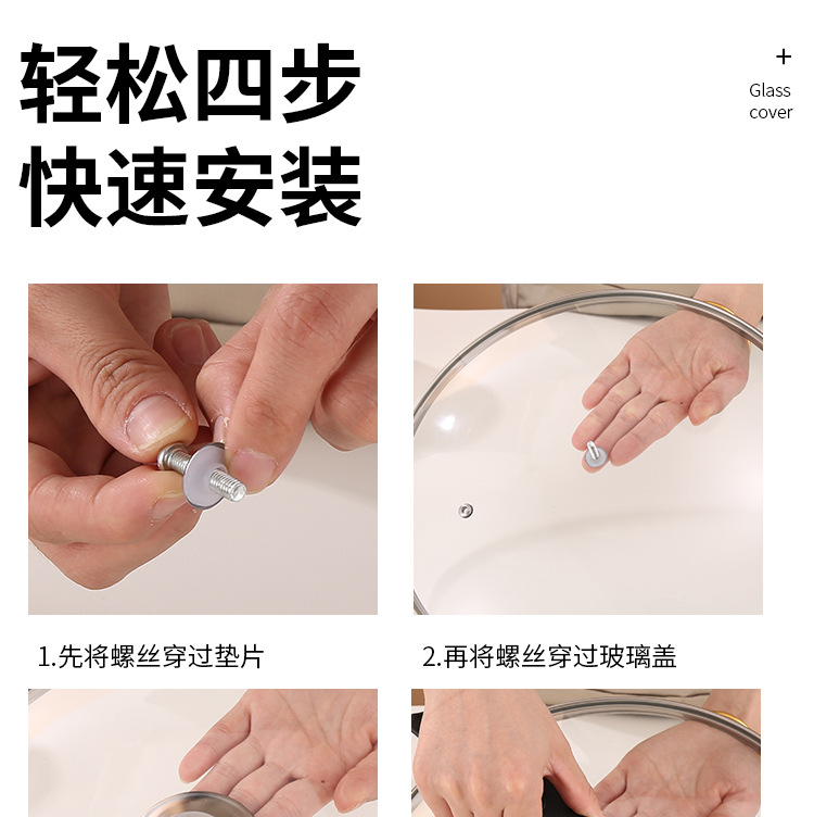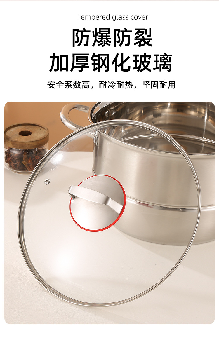 鍋蓋防爆ガラス可視蓋食品級非磁性ステンレス蓋フライパン平底大鍋蓋30cm-40cm