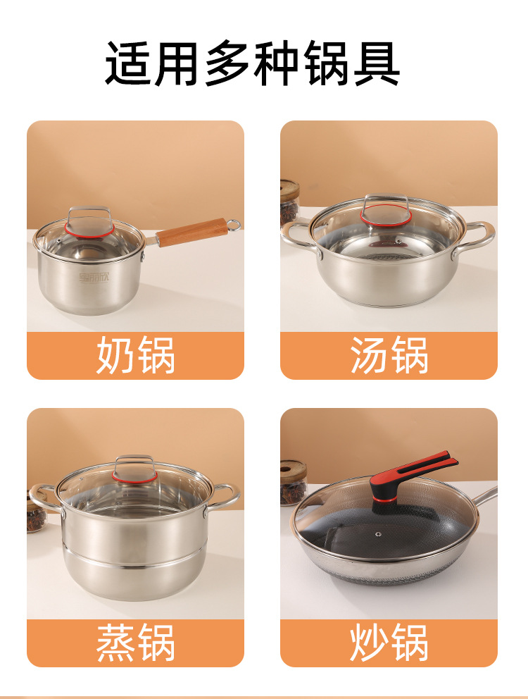 ステンレス雅式蓋ステンレス立炒め鍋蓋大鉄鍋組み合わせ蓋ガラス鍋蓋
