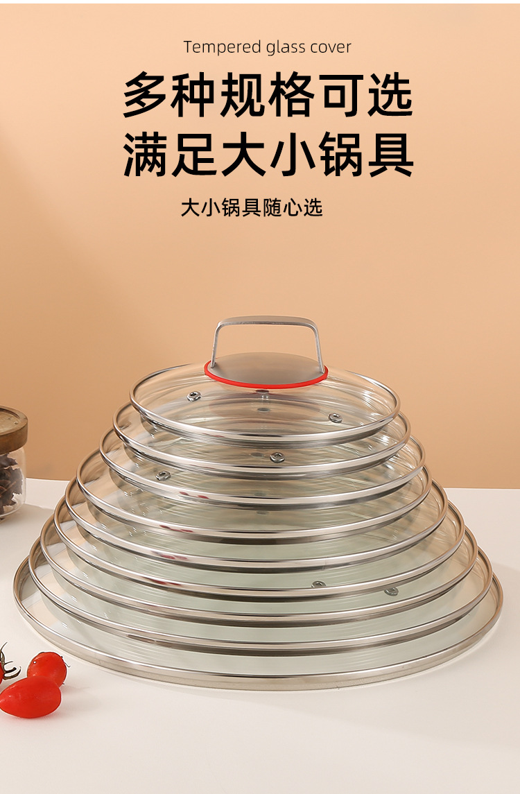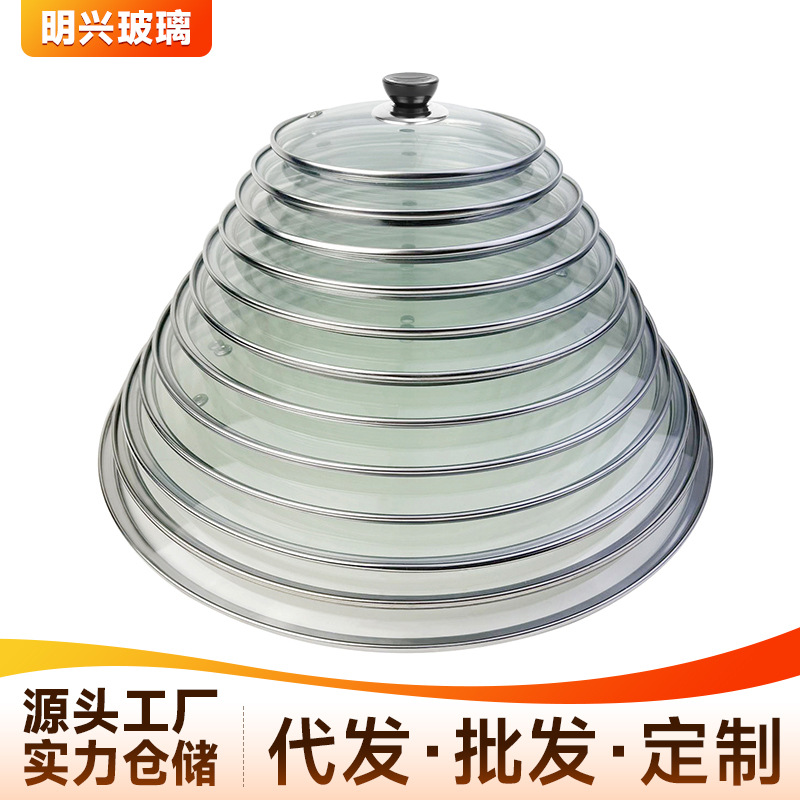 钢化玻璃盖C型3MM透明加厚锅盖家用蒸锅汤锅电锅砂锅盖子代发批发