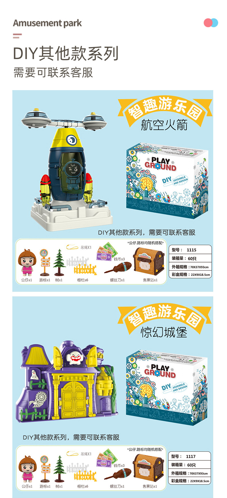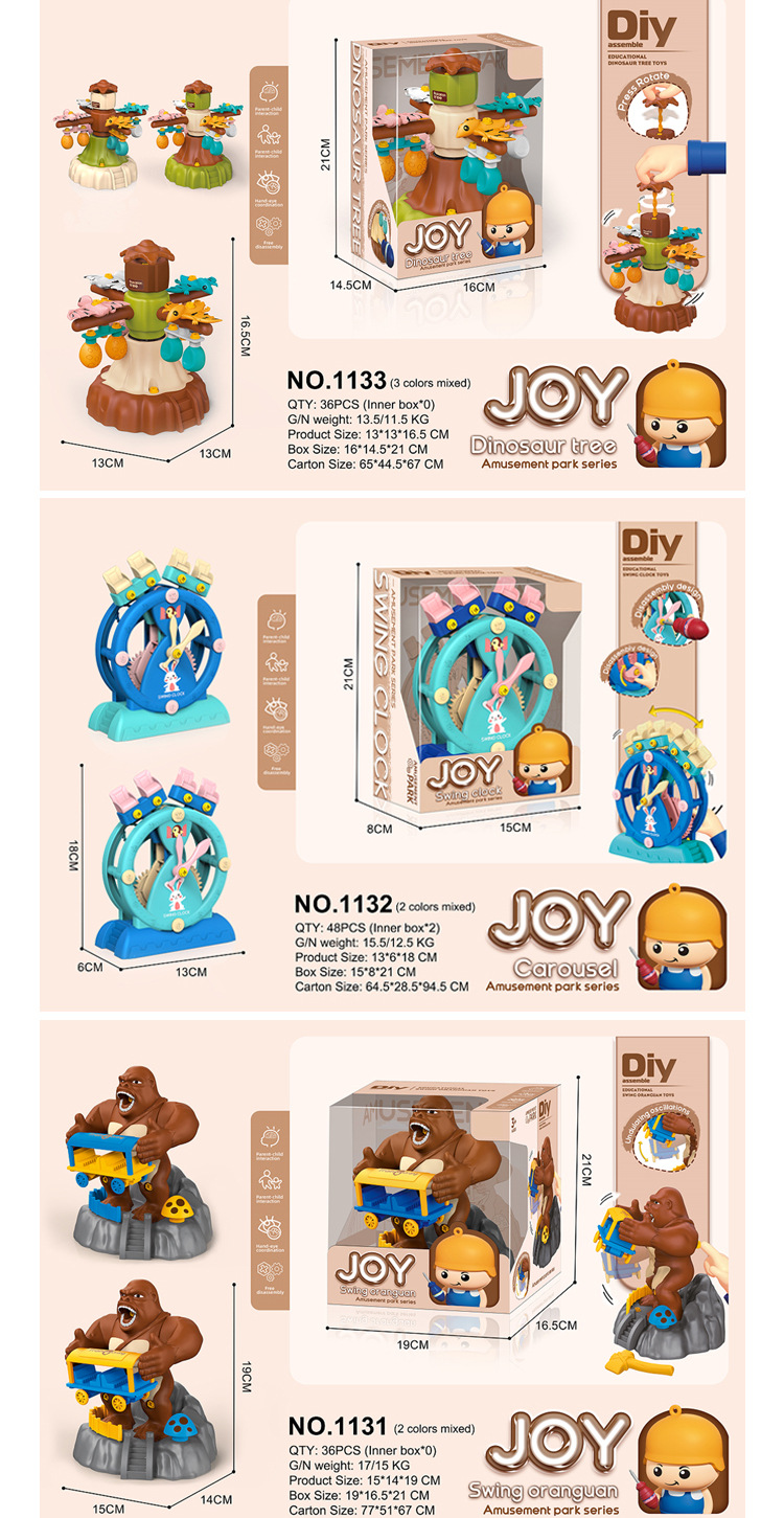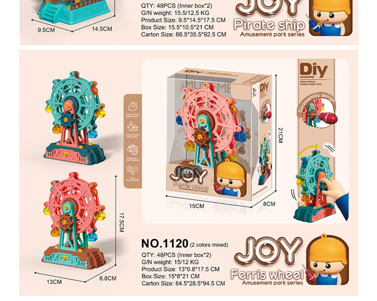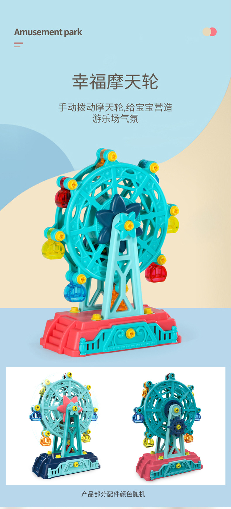 子供の益智diy手動組み合わせ遊園地模型分解ナット積み木観覧車回転トロイの木馬玩具