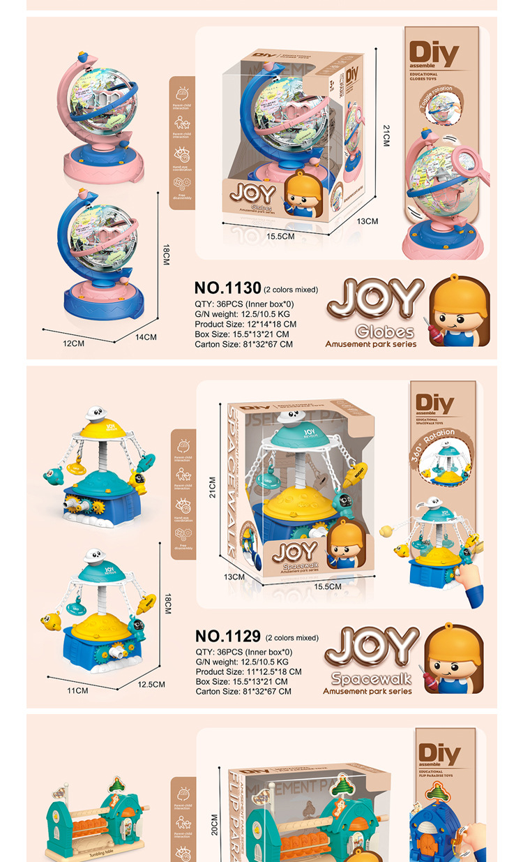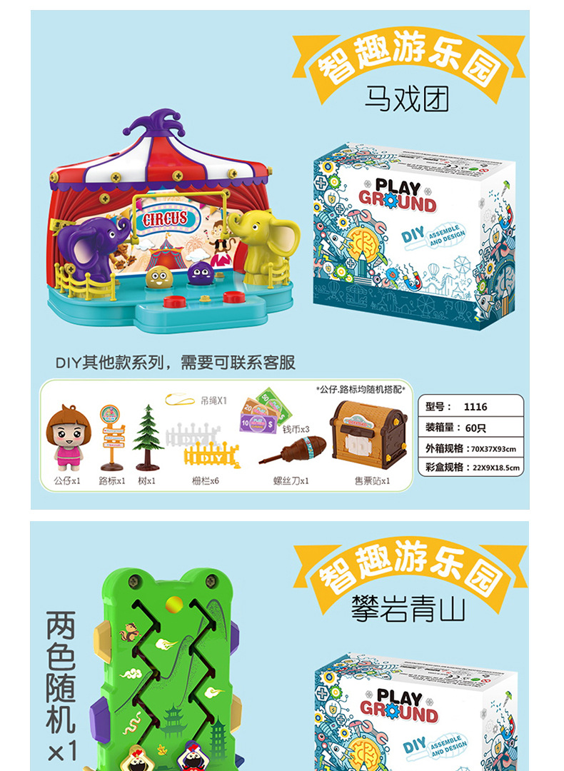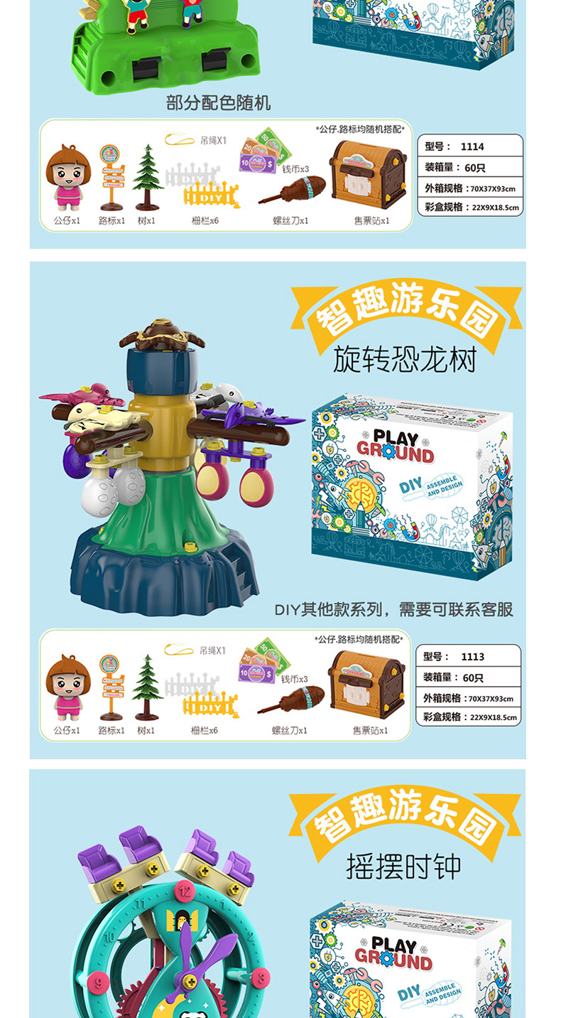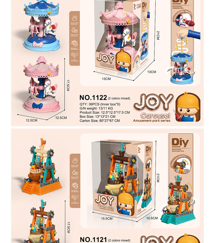 子供の益智diy手動組み合わせ遊園地模型分解ナット積み木観覧車回転トロイの木馬玩具
