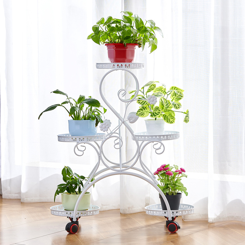 花架子多层铁艺客厅室内阳台植物置物架落地式多层带轮绿萝花盆w&
