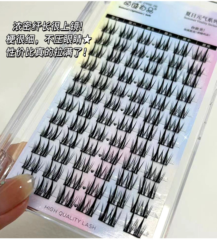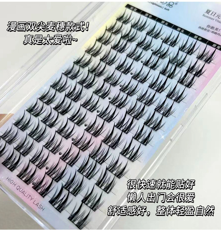 萌えまつげ尚品双先麦穂偽まつげ怠け者三部曲単クラスタ漫画セグメント式自然細茎まつげ