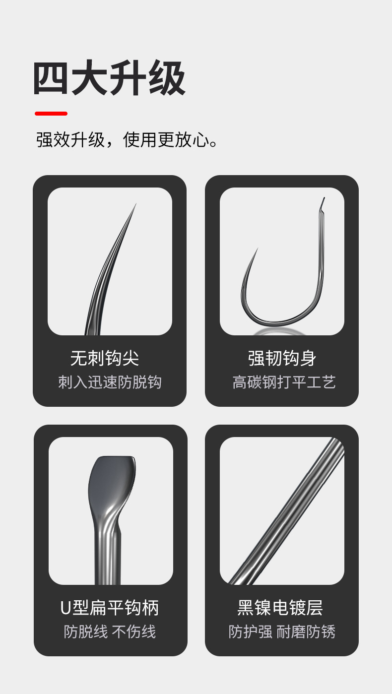 环盛钛合金新关东鱼钩无倒刺黑坑鲤鱼钩超轻超硬大板鲫鲢鳙钓鱼钩