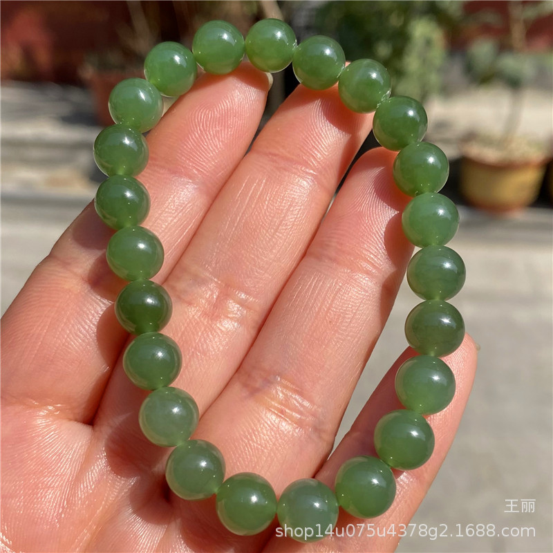 天然和田玉碧玉手串ロシア料碧玉8mm氷緑円珠単輪ブレスレット卸売り証明書付き