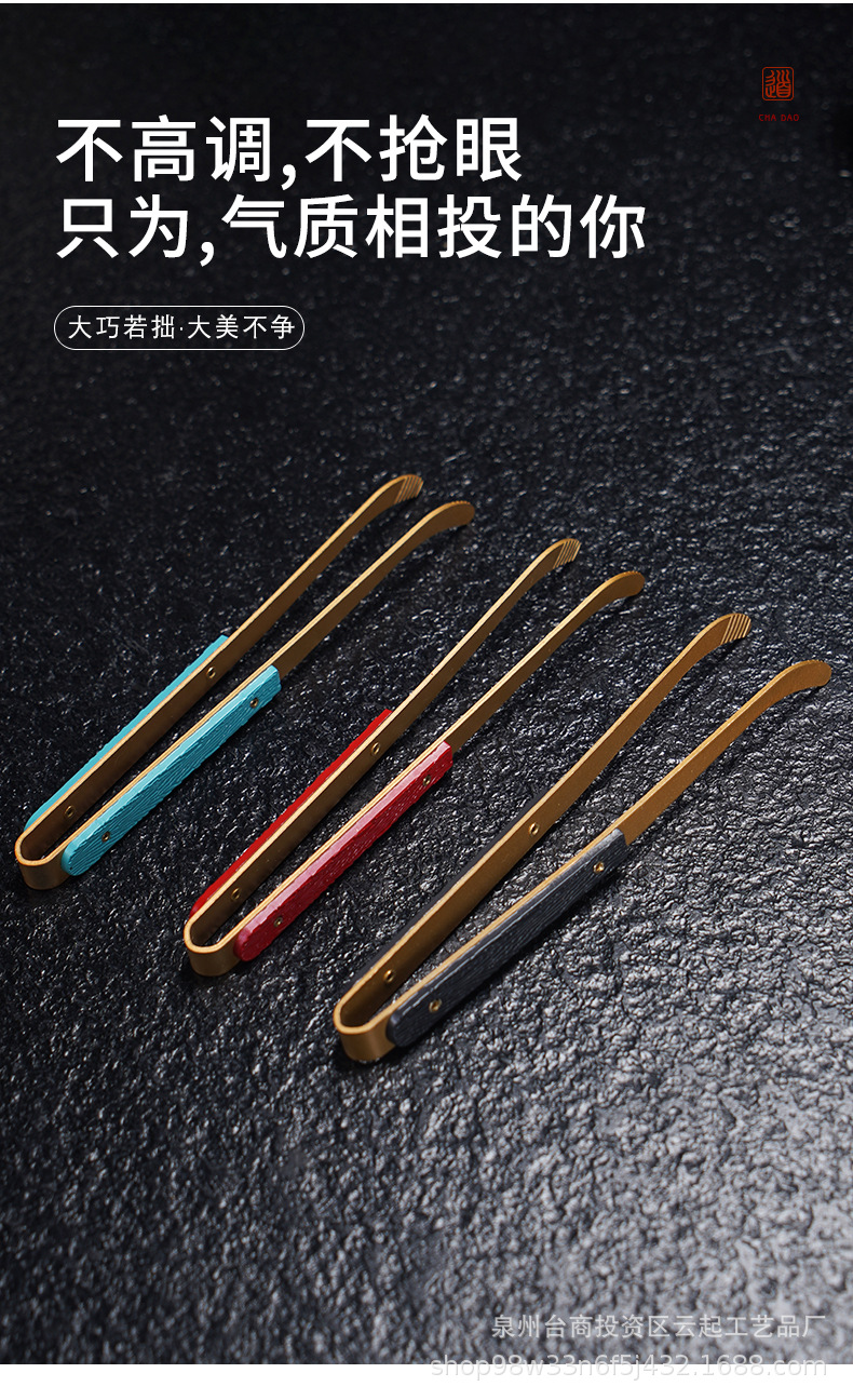 高級茶挟み茶道具用品部品カンフー茶茶杯挟みピンセット防熱カップ挟み合金銅製滑り止め
