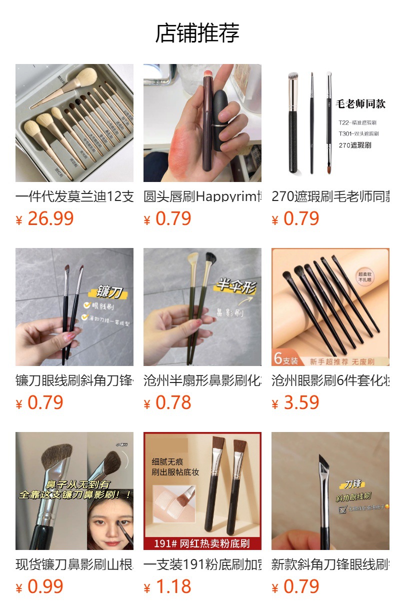滄州半扇形鼻影ブラシ化粧ブラシ鎌形斜頭小扇形影鼻梁装飾高ハレーションブラシ