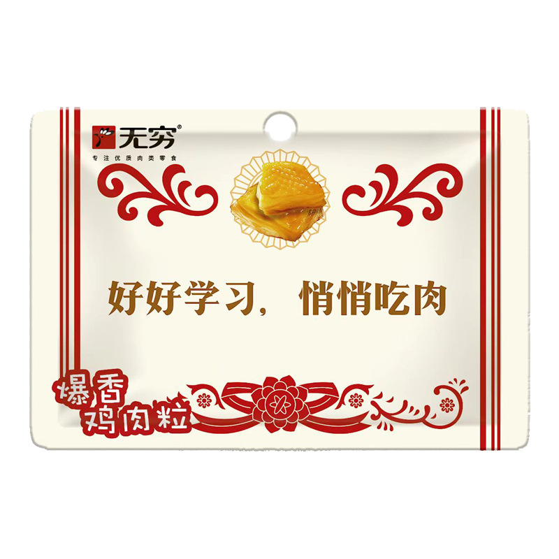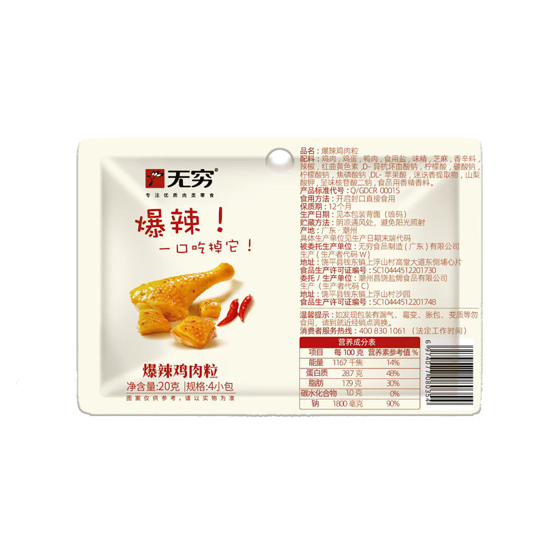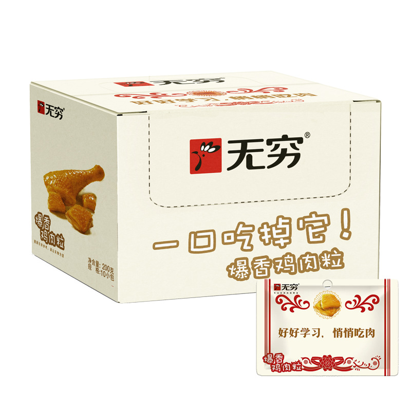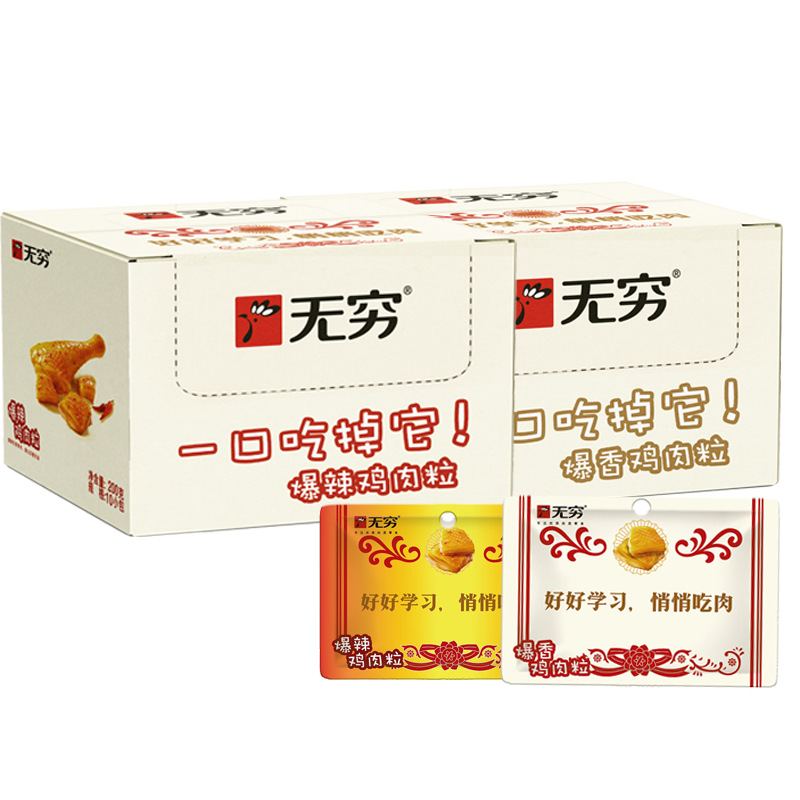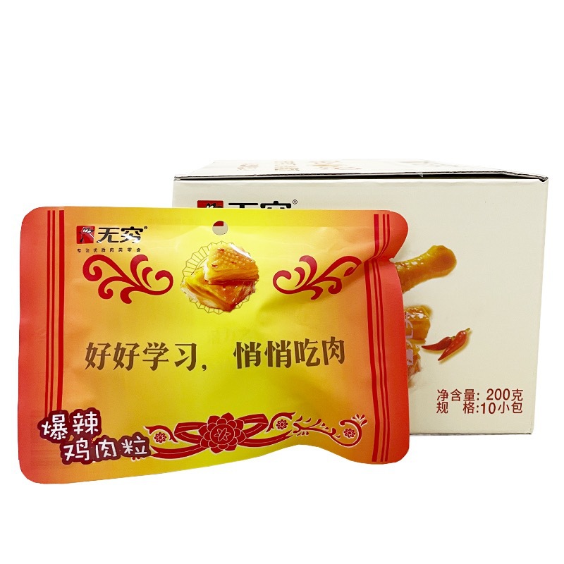 无穷爱辣鸡米整盒300g广东特产泡面搭档卤味香辣零食鸡肉即食