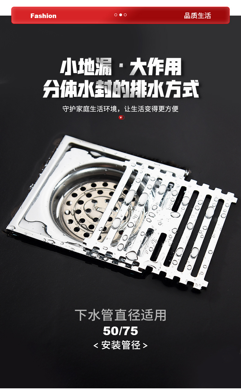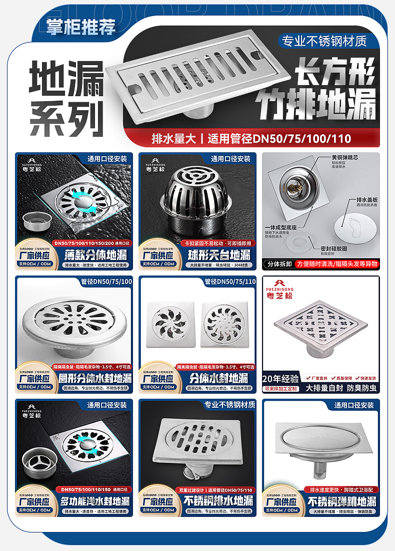 粤芝松現代シンプル304ステンレス水封防臭洗濯機トイレ浅水封地漏れ