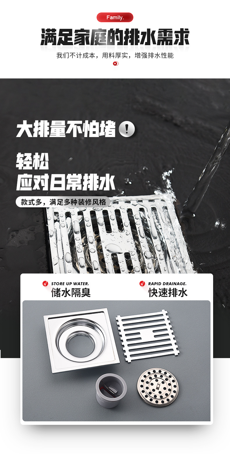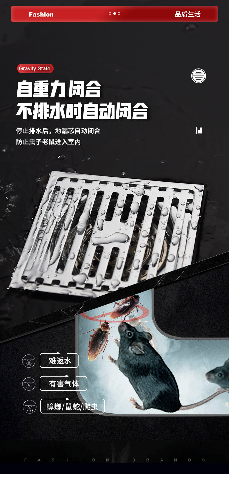 枪灰色地漏防臭不锈钢大排量卫生间浴室淋浴房洗衣机下水道防虫臭
