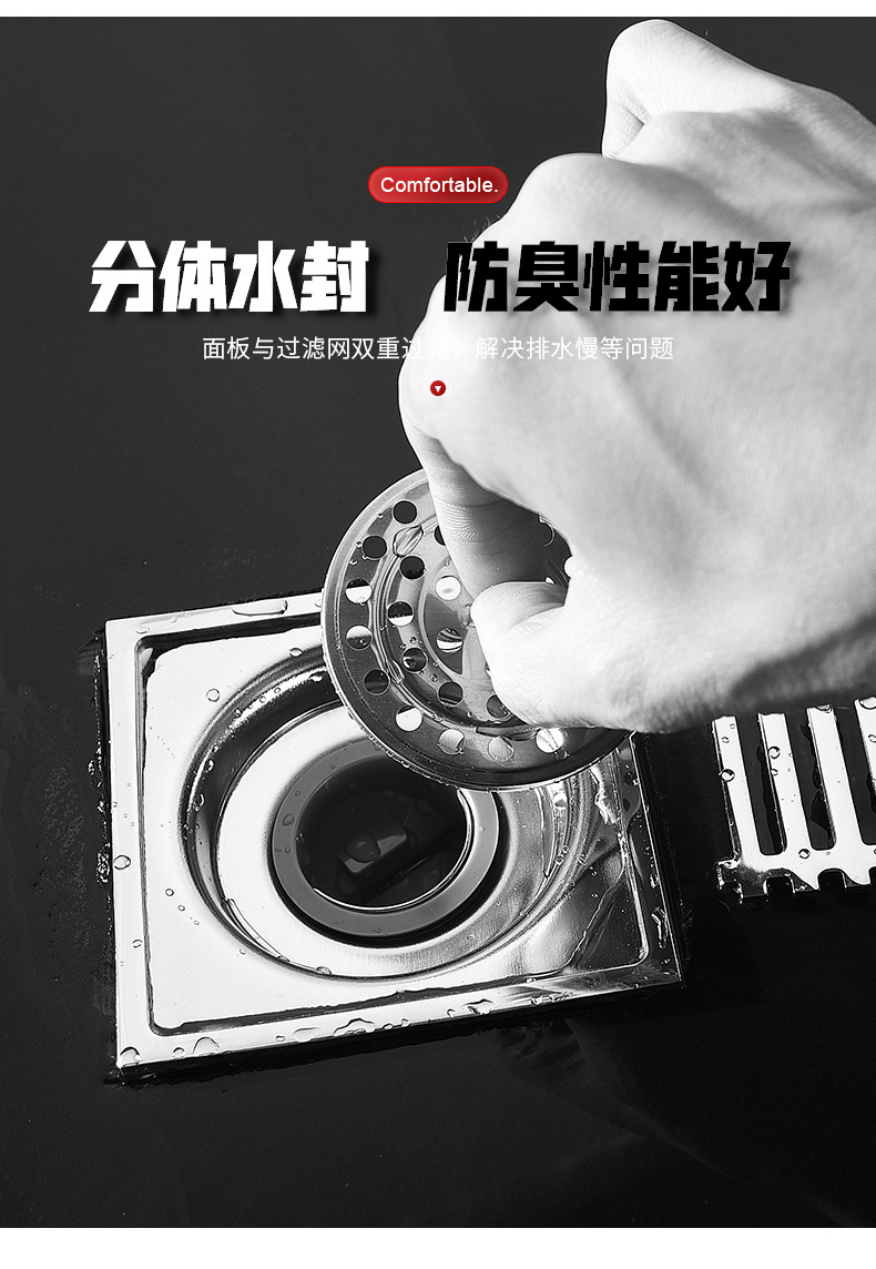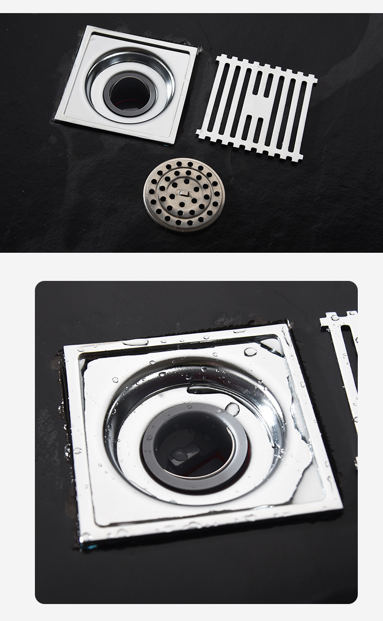 304ステンレス鋼防臭排水口、浴室、バルコニー、洗濯機排水口、正方形工事排水口