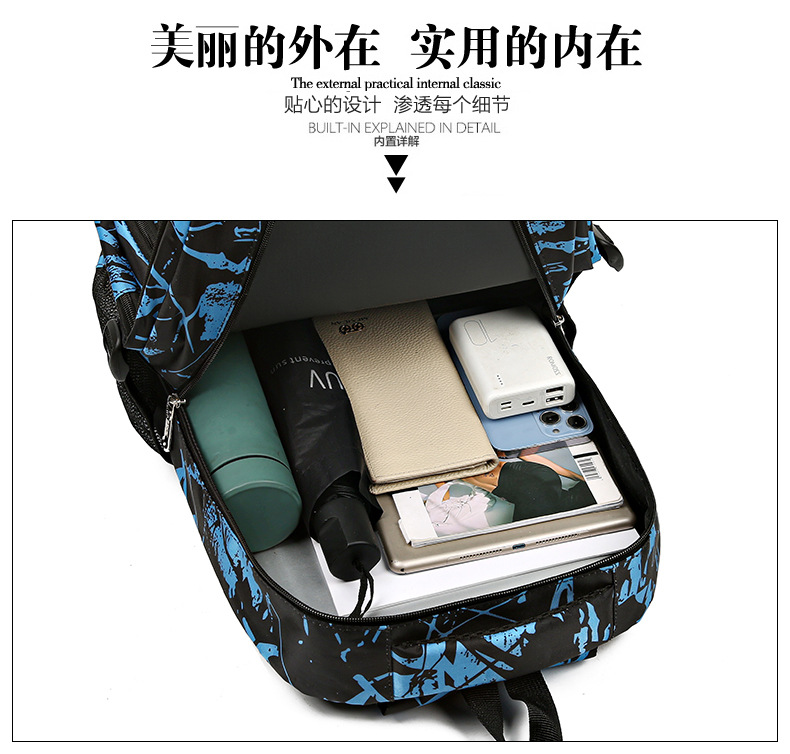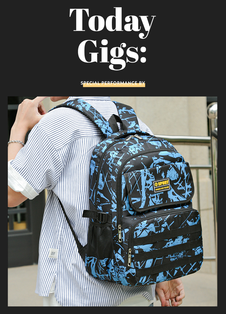 カスタムプリント入りリュックサック アウトドアカジュアル撥水トラベルバックパック メンズ 高級感 大容量 学生用スクールバッグ