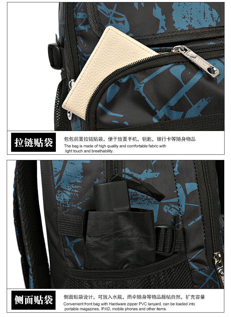 外国貿易の迷彩のリュックサックの流行のファッションの男女の同モデルの大容量のリュックサックのレジャーのマイナスの旅行