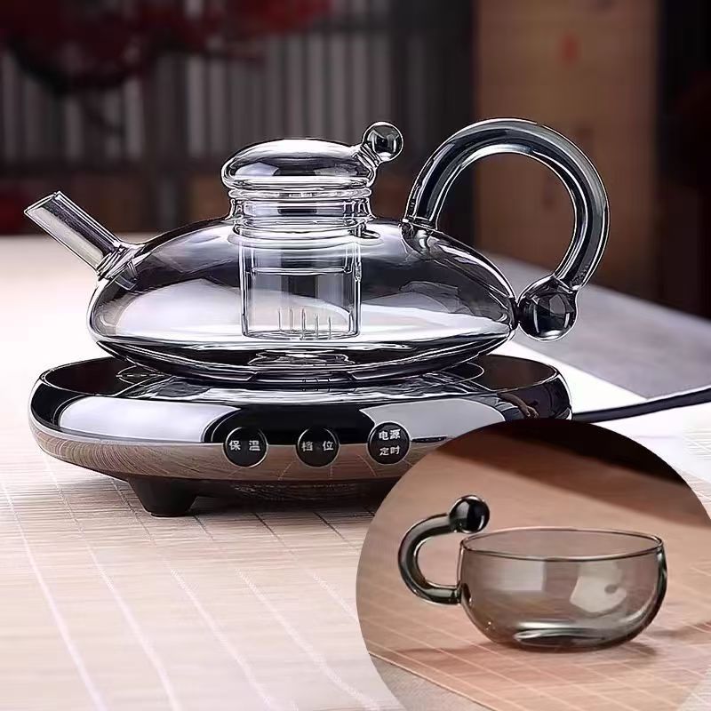 ストーブの周りで沸騰したティーポット、高温耐性の高ホウケイ酸ガラスティーセット、家庭用の高見えする蒸し花茶セット、モダンなティーポット
