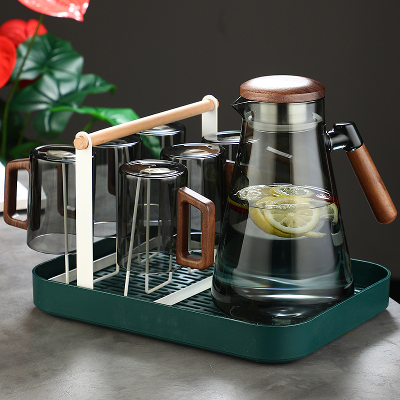 煙灰色ガラス冷水カップ家庭用セット高温冷水ポット大容量北欧氷筒ポット