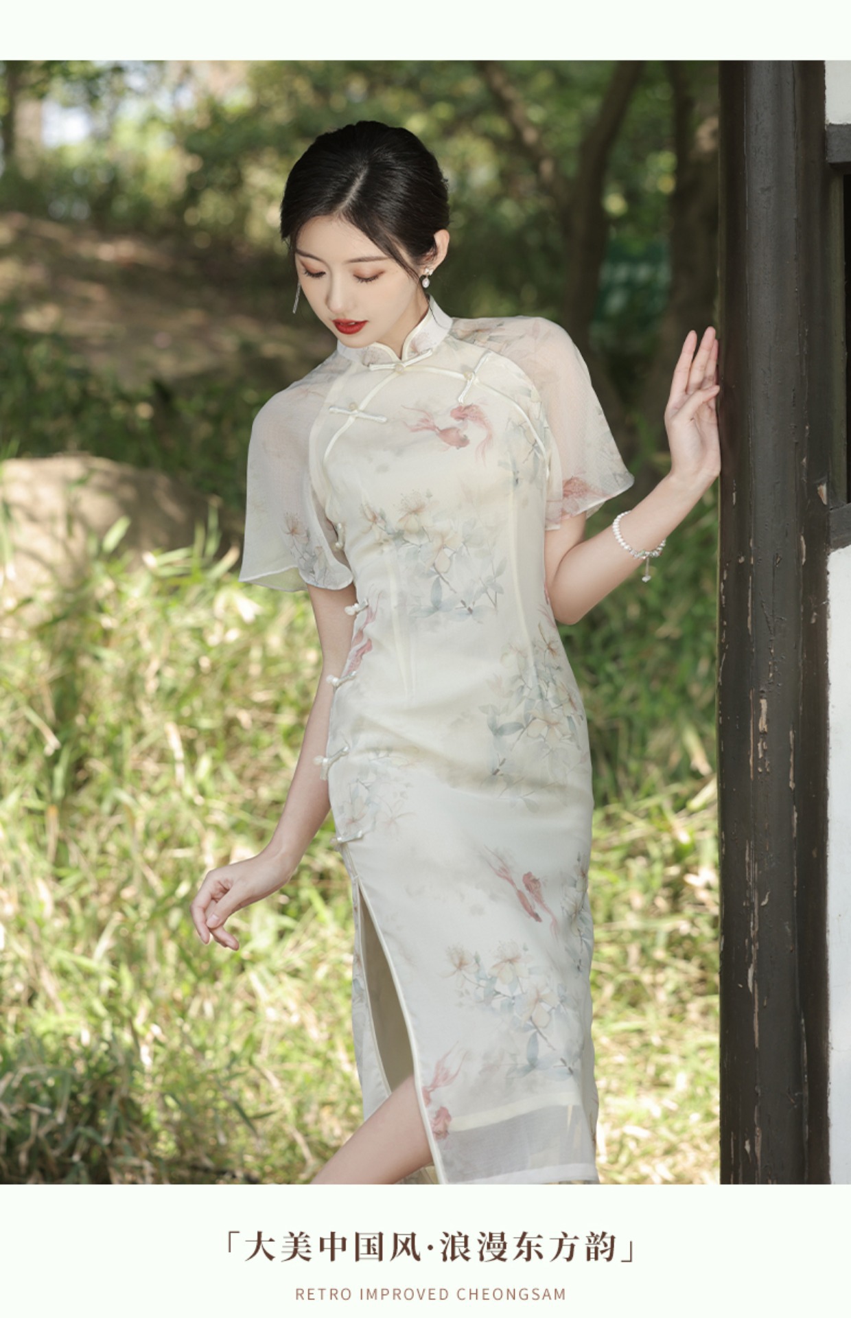 2025 新しい新しい中国風の美しい改良されたチャイナドレス毎日着用できる若いスタイルの花柄ドレス夏の女性