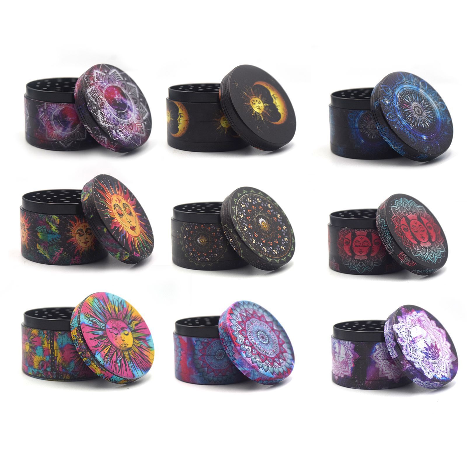 クロスボーダー直供カラープリント全包亜鉛合金磨煙器四層uv太陽金属研磨器grinder