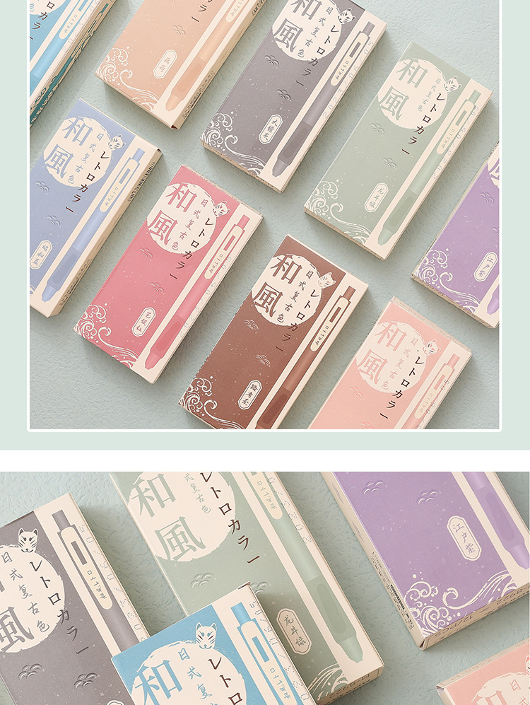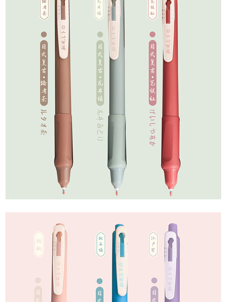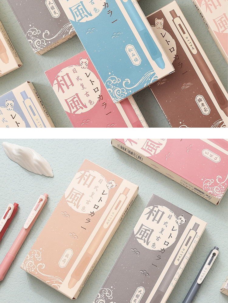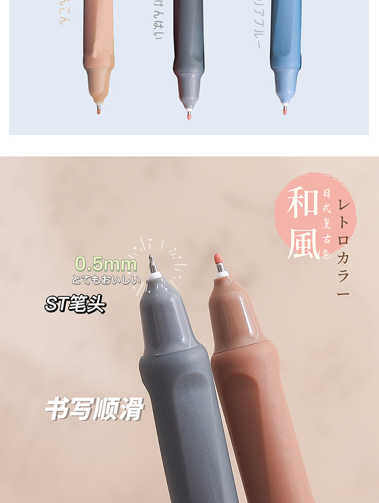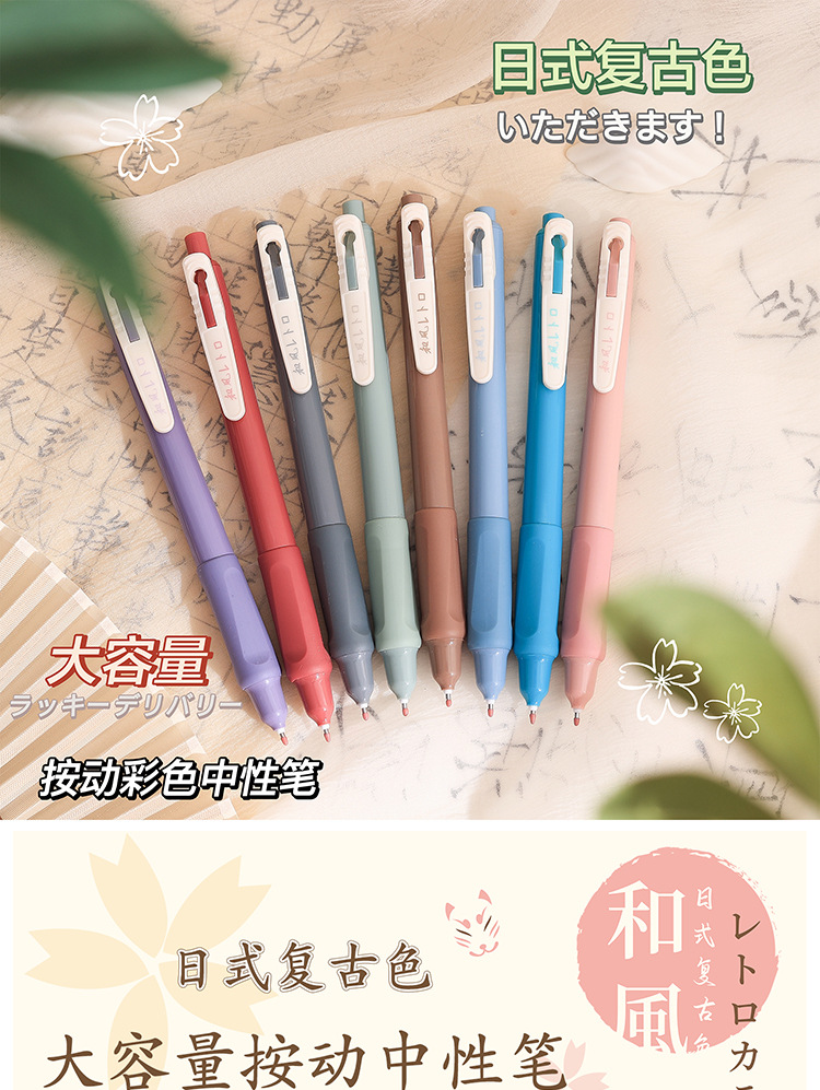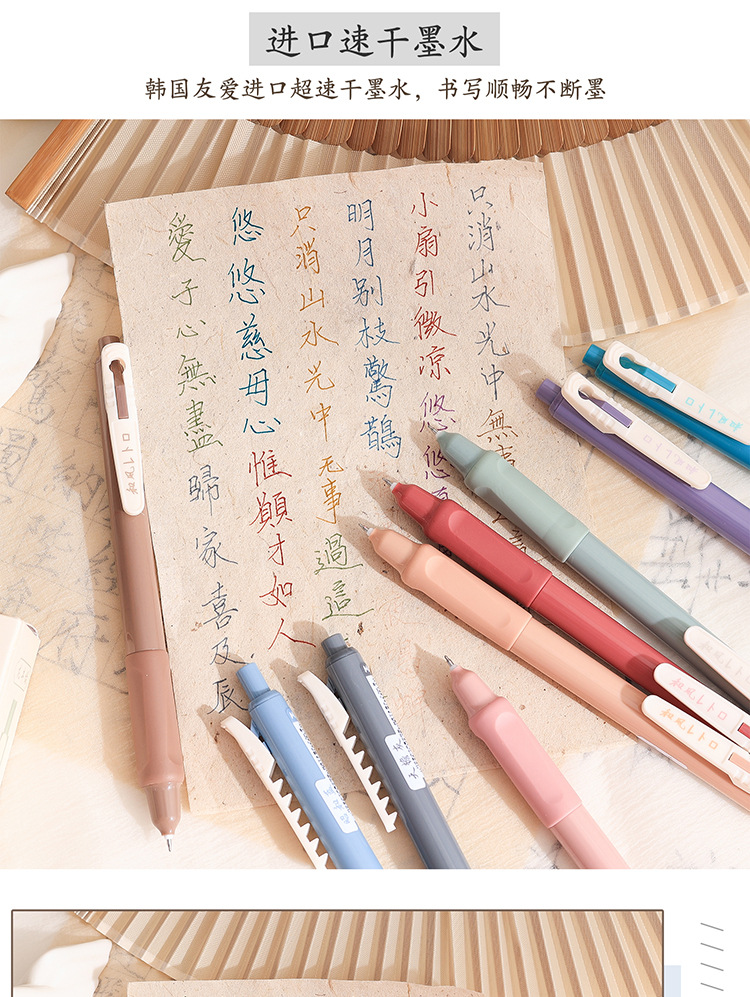 慕楽日本式復古カラー押し中性ペン高颜値学生文房具多色手帳ペン重点マーカーペン