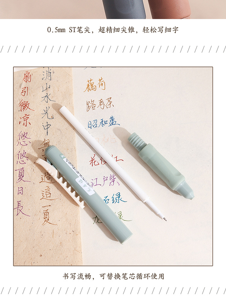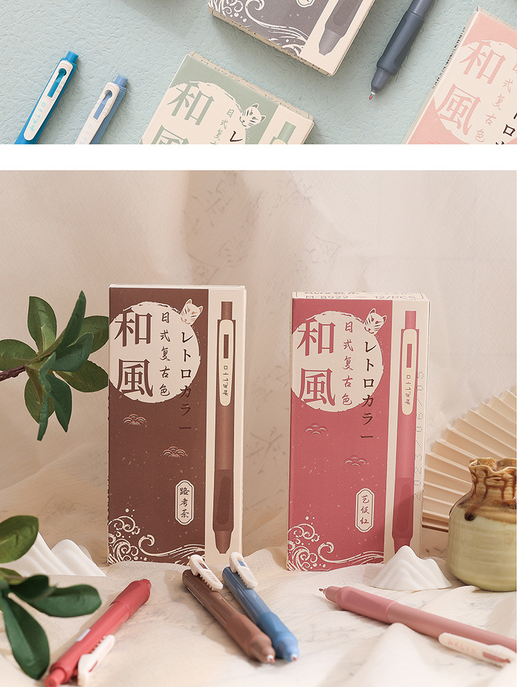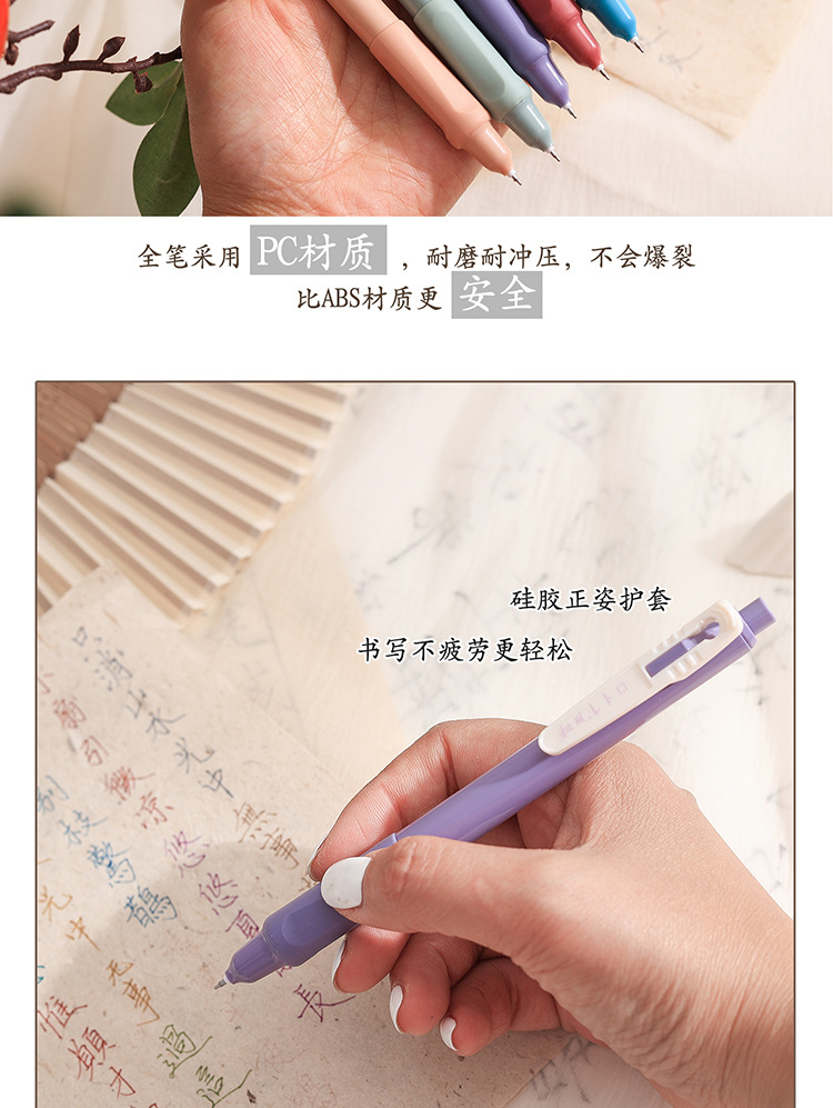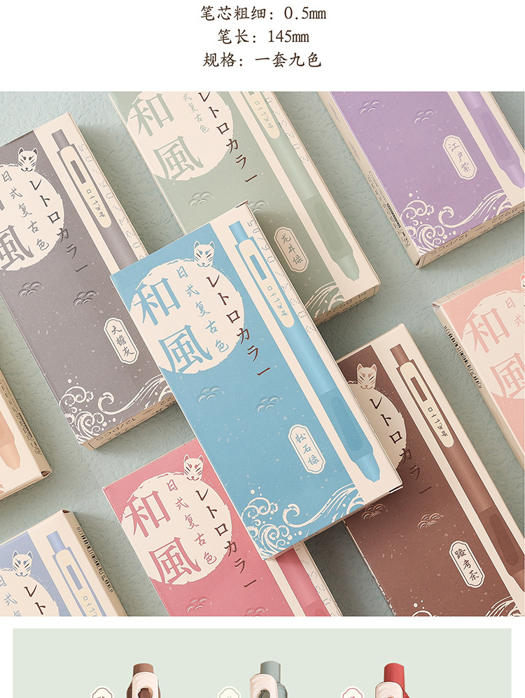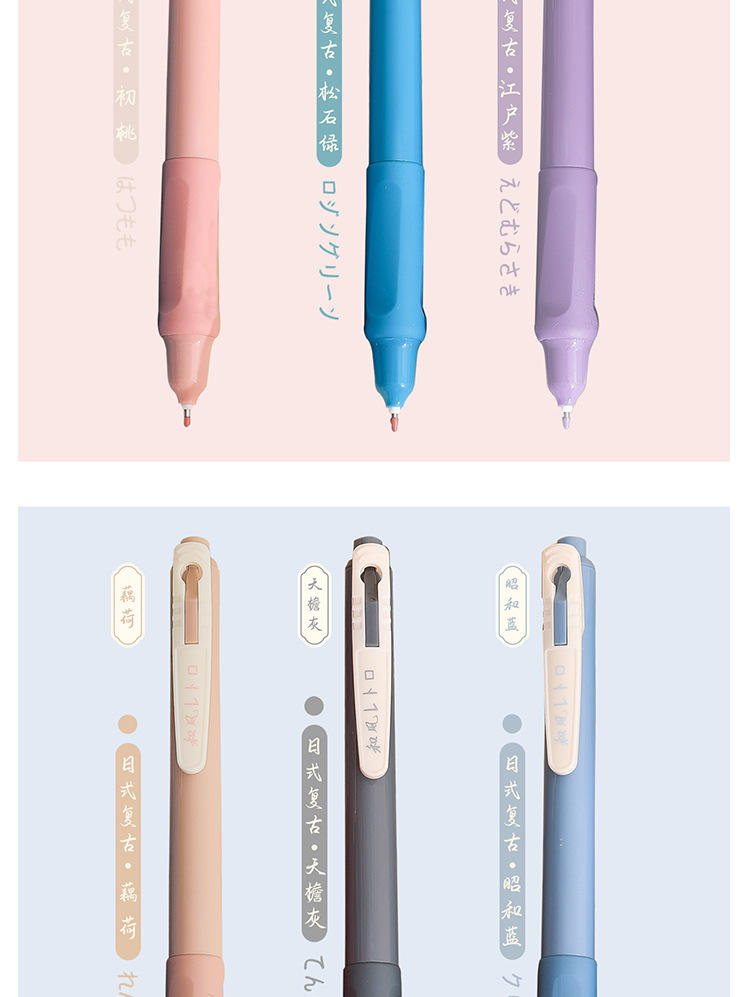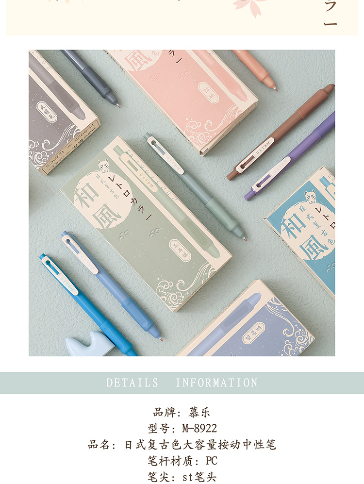 慕楽日本式復古カラー押し中性ペン高颜値学生文房具多色手帳ペン重点マーカーペン