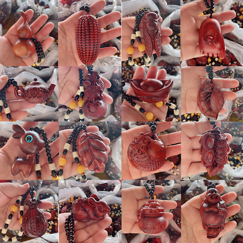 工場卸売紫檀手彫り木彫り貔貅財神ペンダント工芸品、ライブストリーミングや屋台で人気商品