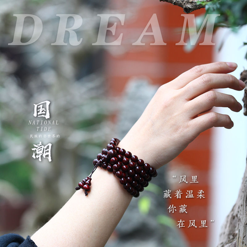 メーカー卸売りの古い材料インドの小葉紫檀手串男女108個の高油密文は仏珠檀木のブレスレットを遊んでいます。