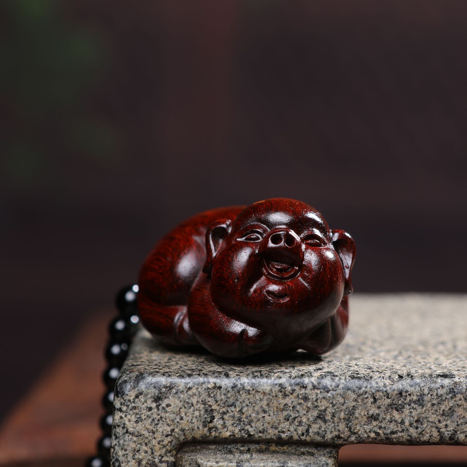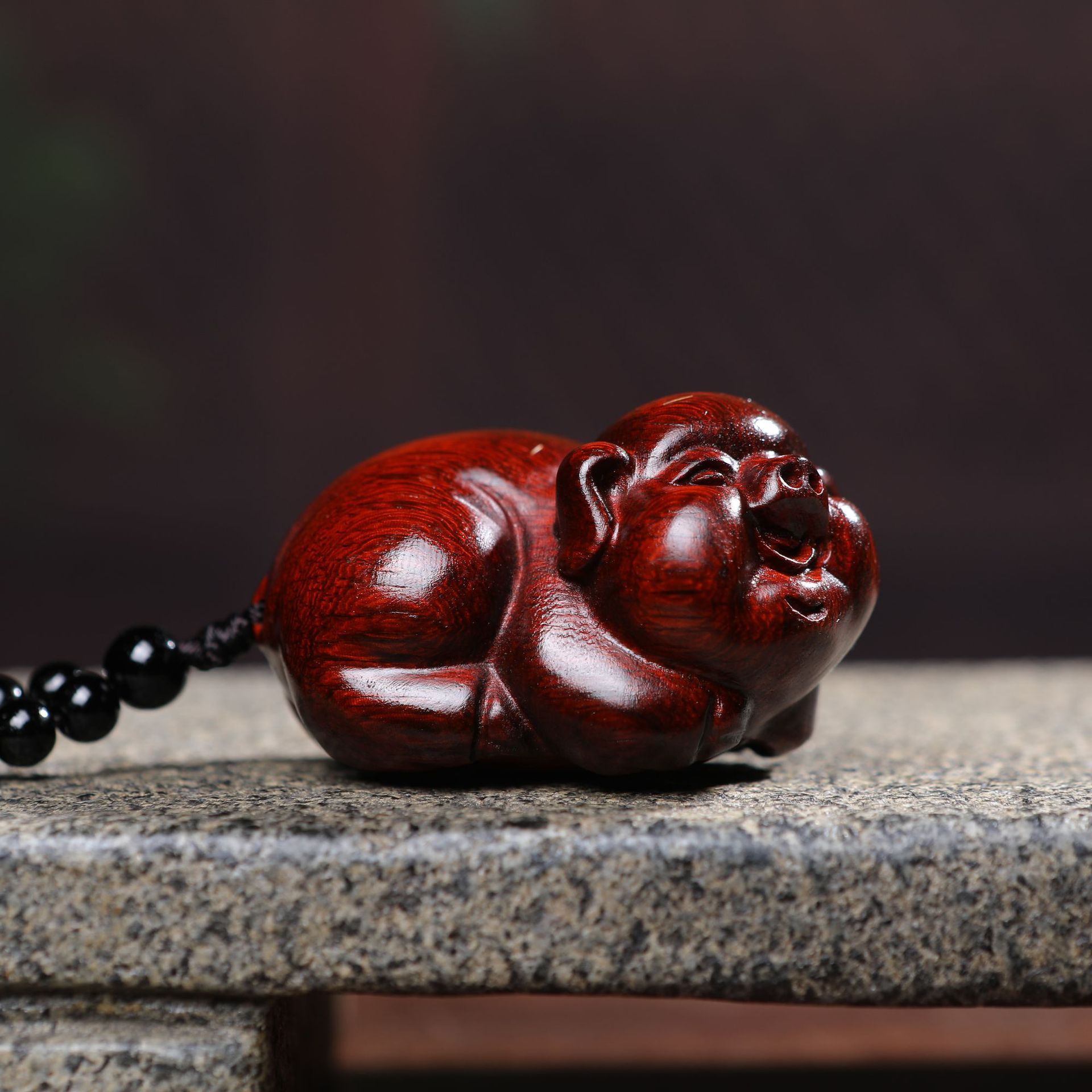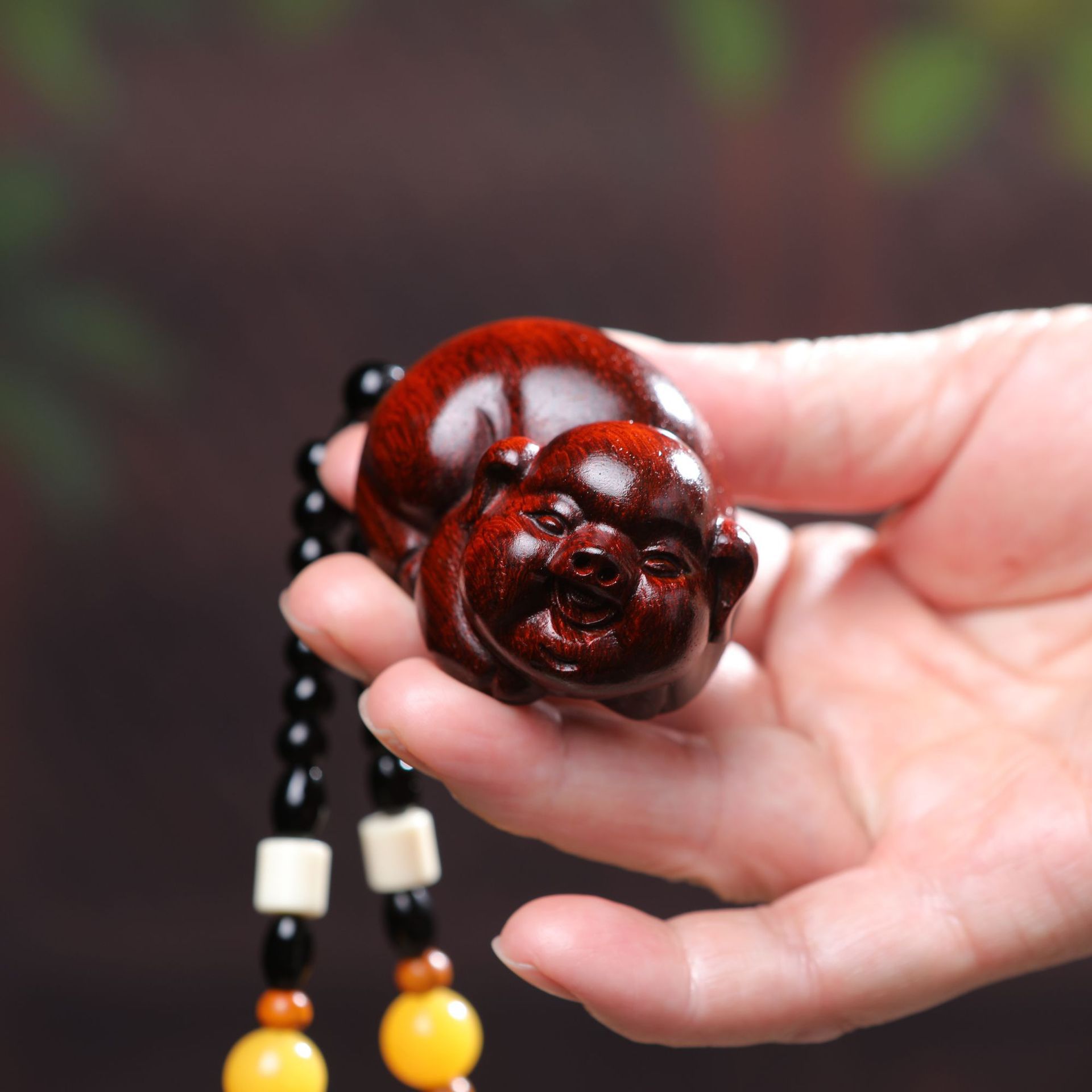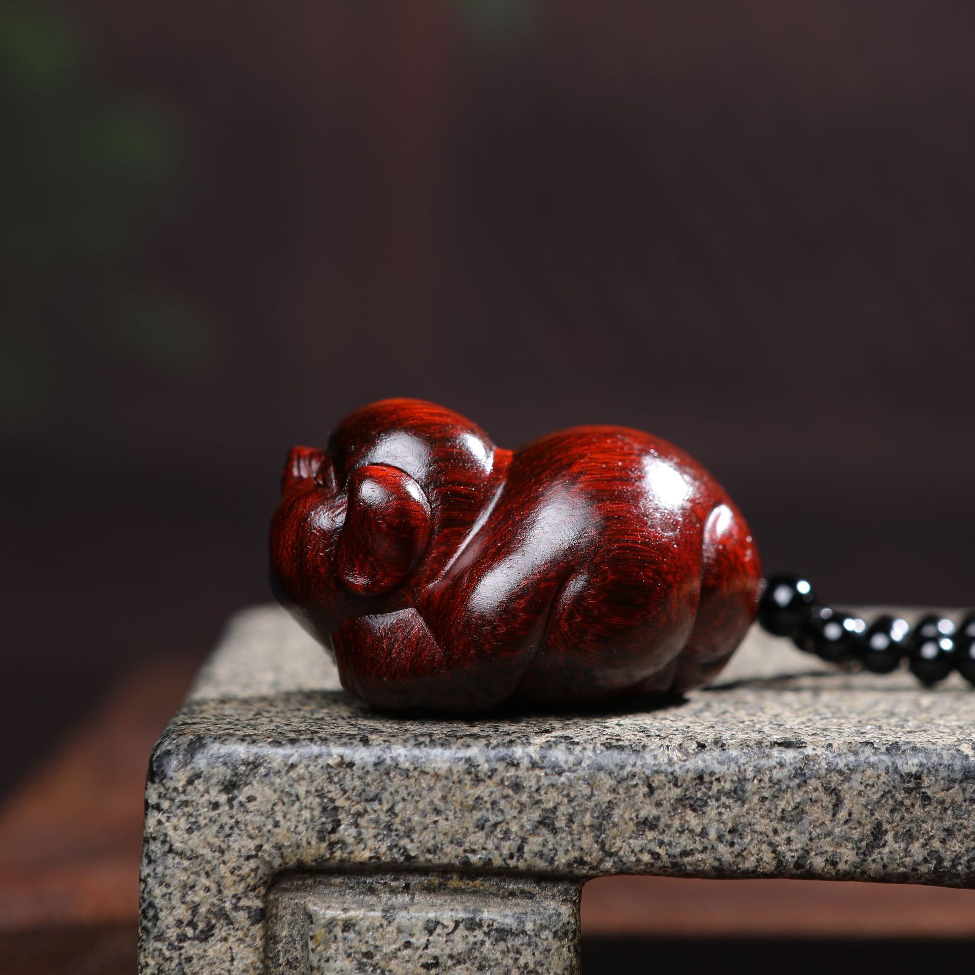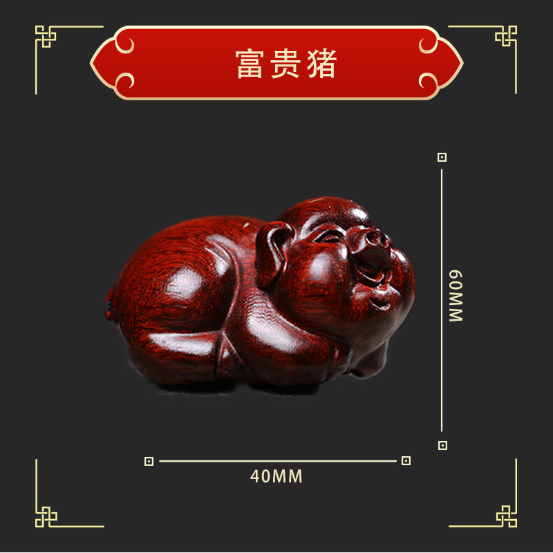 【富貴豚】紫檀木彫りの置物実木の家庭用装飾の取っ手はペンダントを遊んで贈り物をします。