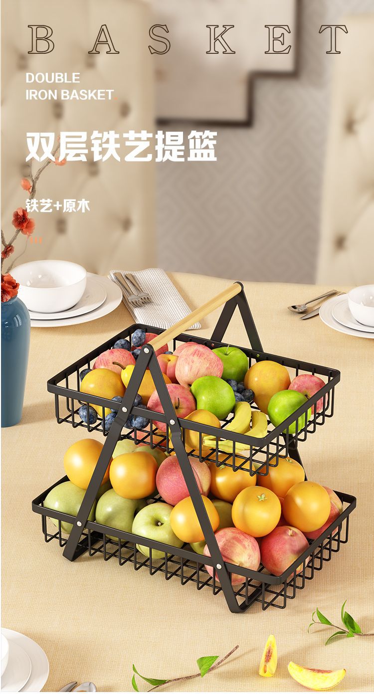 日本式鉄芸野菜果物手提げバスケット家庭用キッチン果物収納バスケット棚リビングテーブル果物バスケット金属