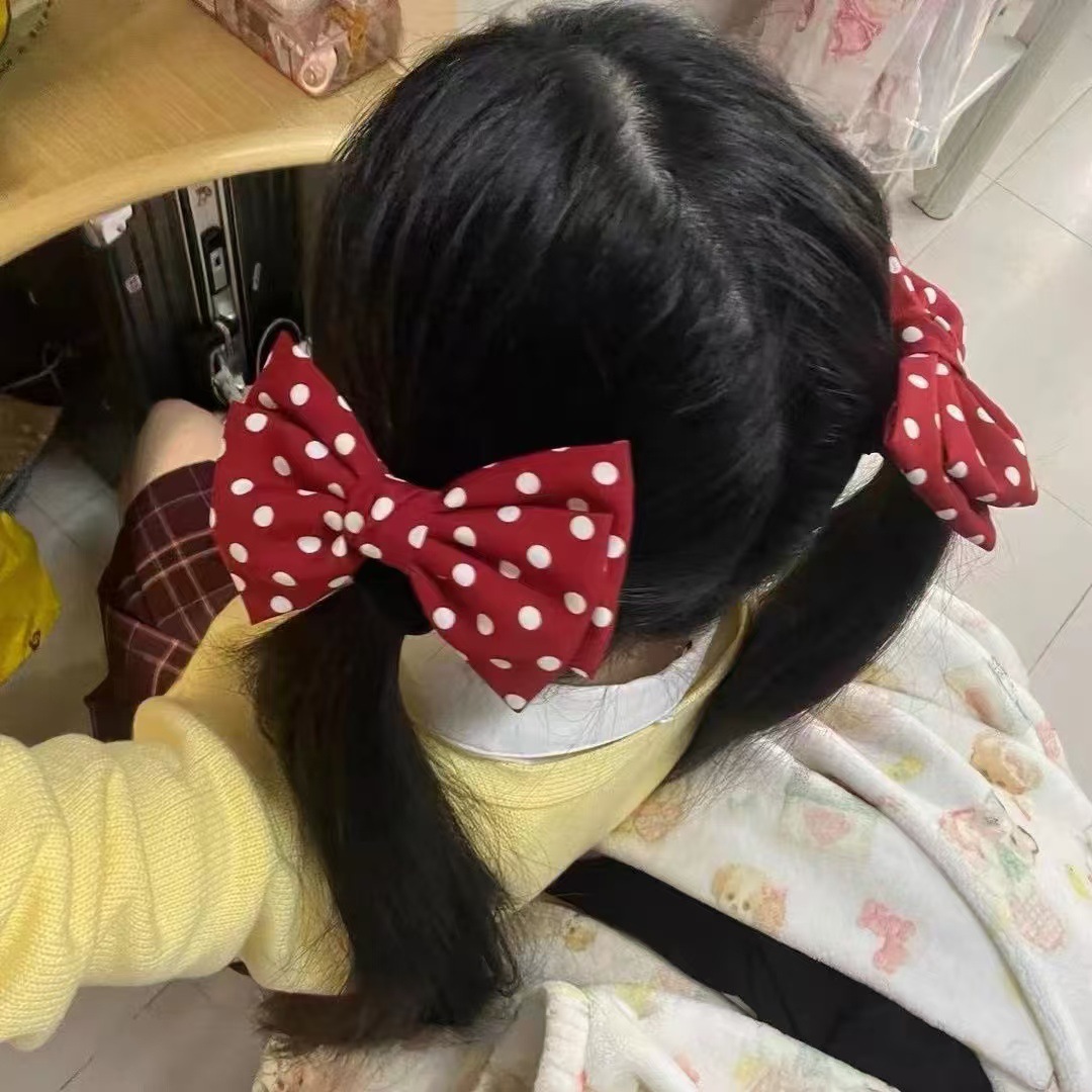 波点蝶結びのヘアピン韓国版の学生の甘いアヒルの口は少女の髪を挟みます。