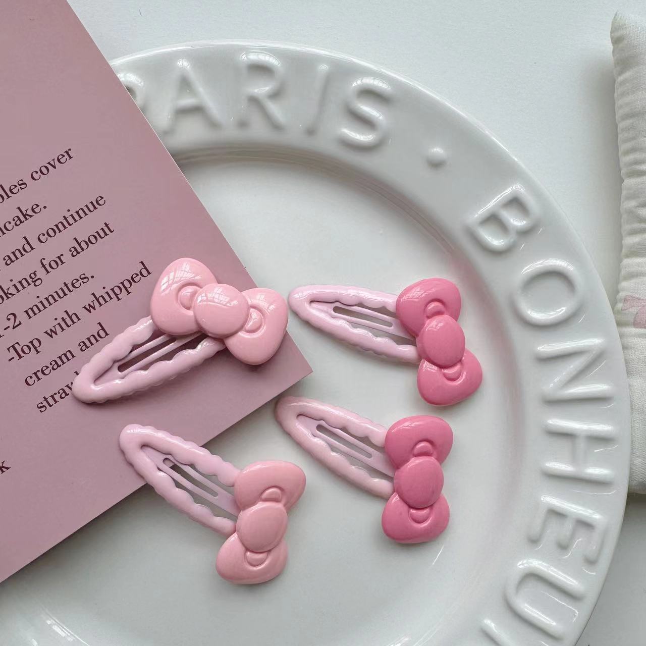 ピンクリボンbbクリップins少女砕髪前髪エッジクリップかわいいヘアクリップ甘いカモ口クリップ