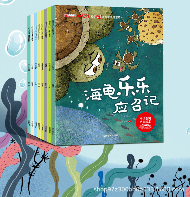 ウミガメの音楽は子供の絵本の物語の本を呼びます。