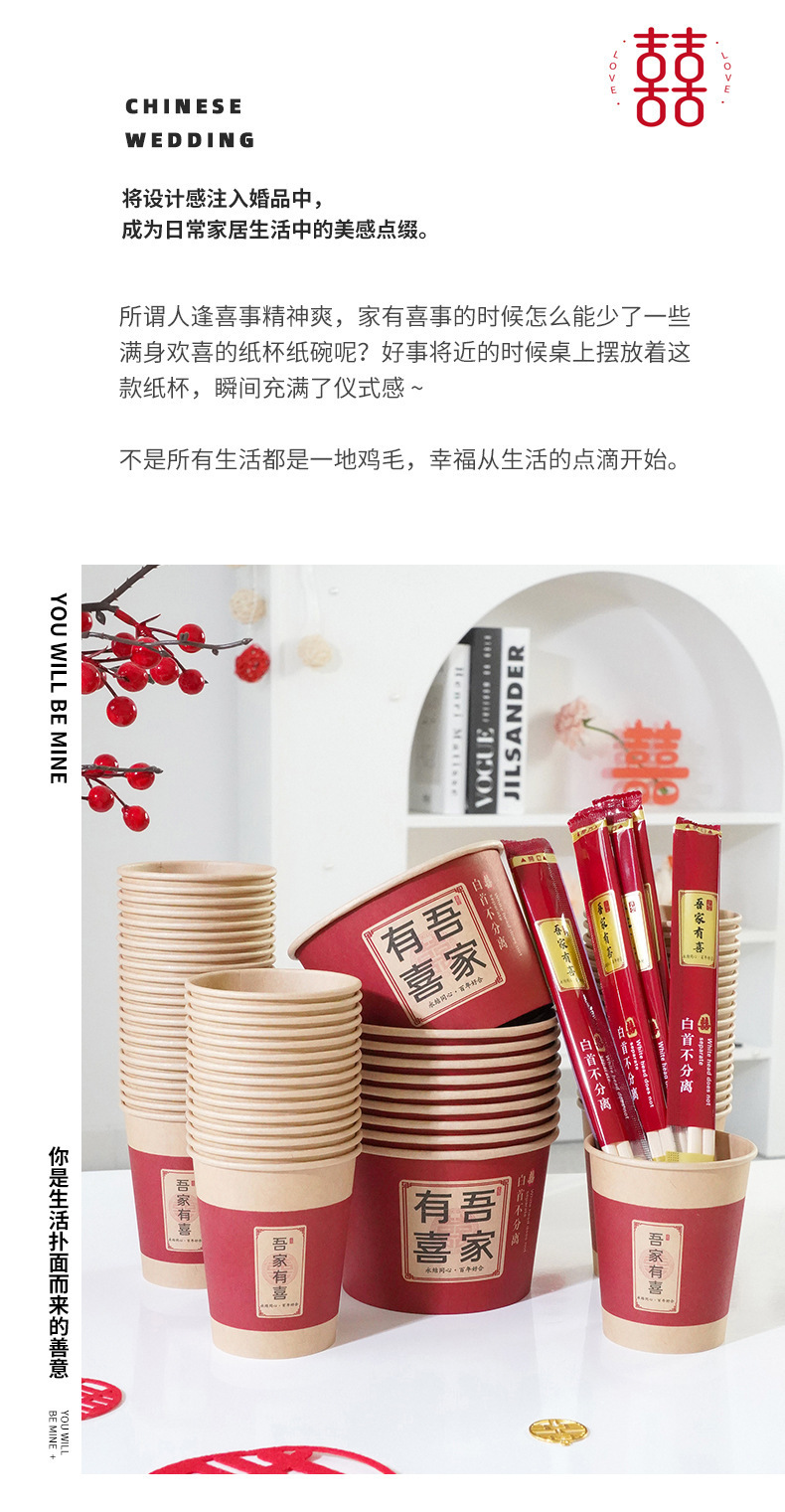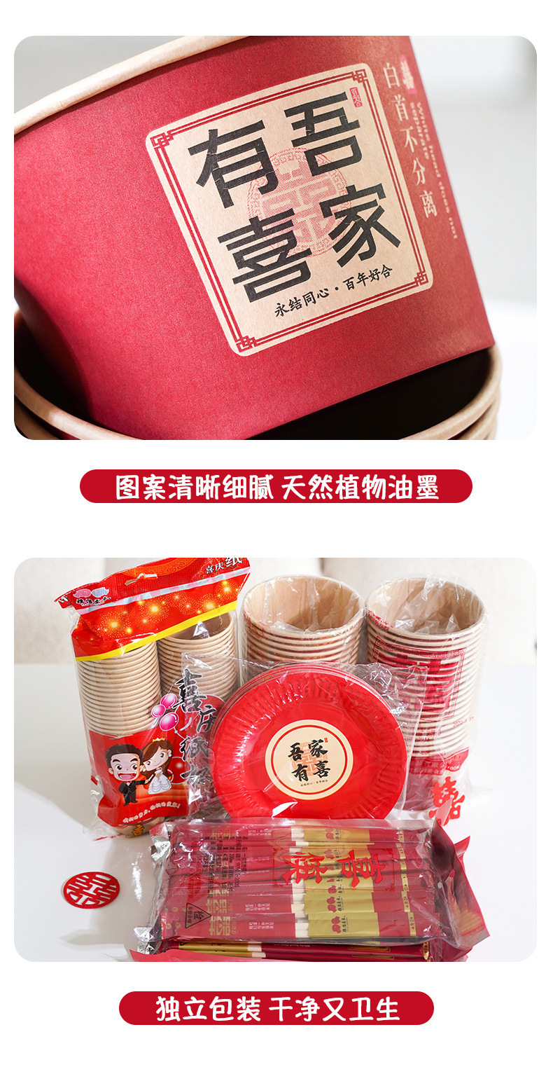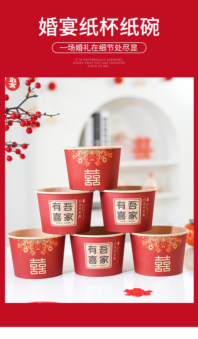 结婚用品一次性红色纸碗结婚礼宴席酒席专用婚庆用品大全加厚喜碗
