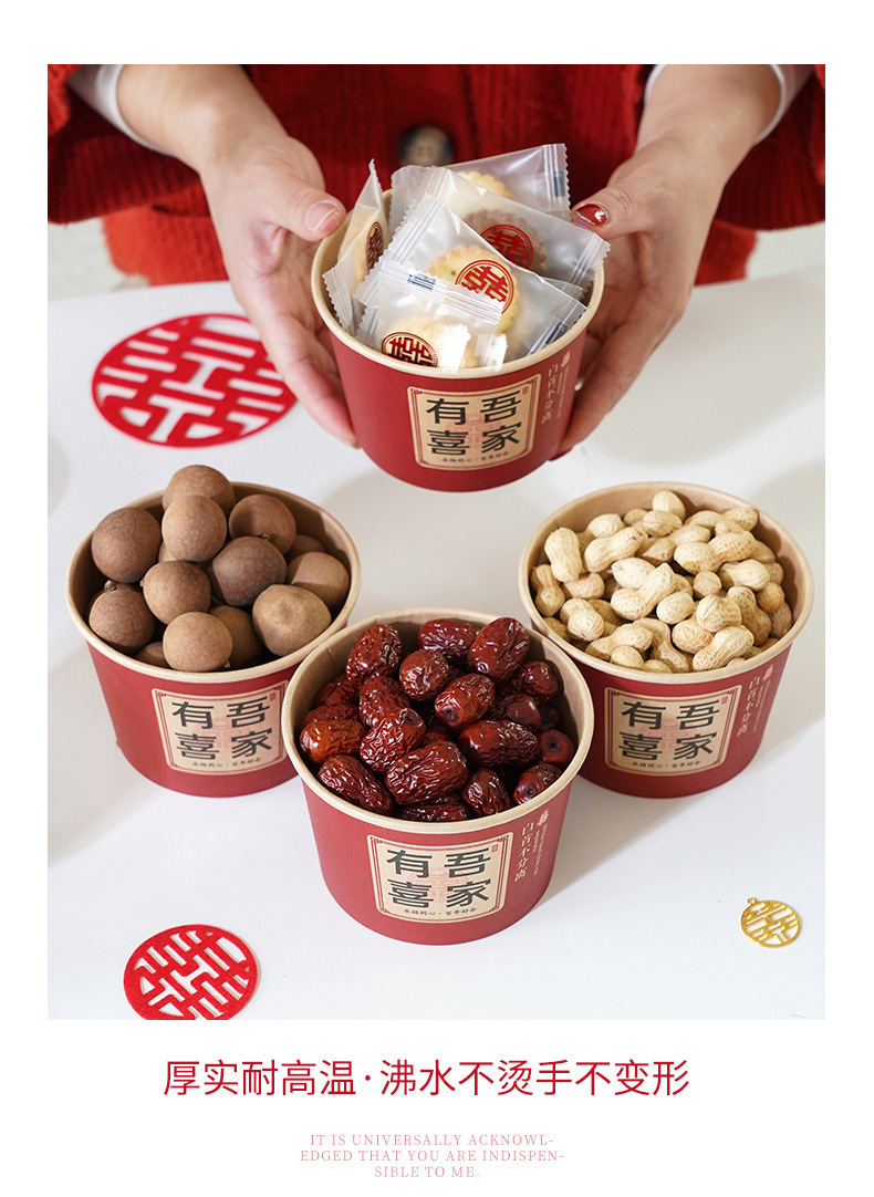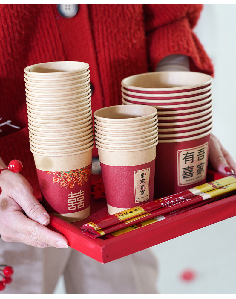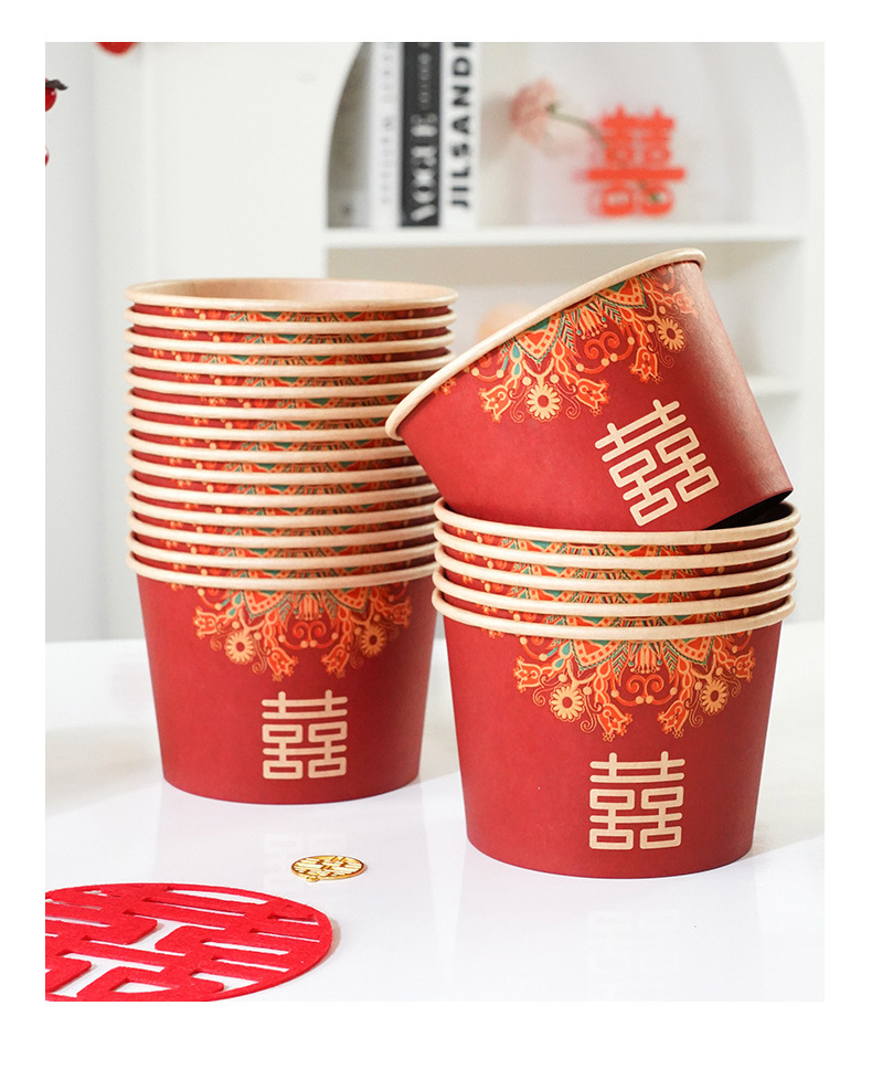 厚手の使い捨ての赤い喜字紙碗家庭用喜碗結婚披露宴の酒席のお祝い碗の結婚祝い用品