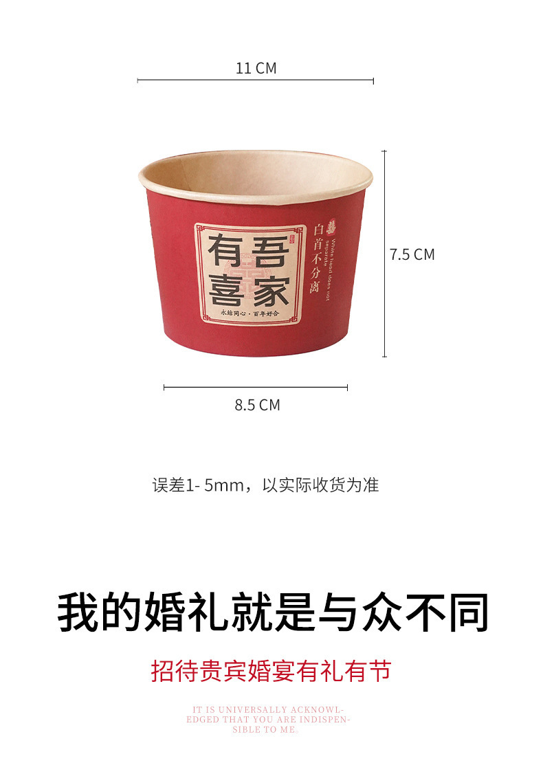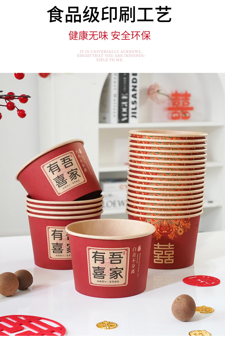 结婚一次性纸碗加厚喜庆红色圆形喜碗婚礼酒席订婚宴家用婚庆用品