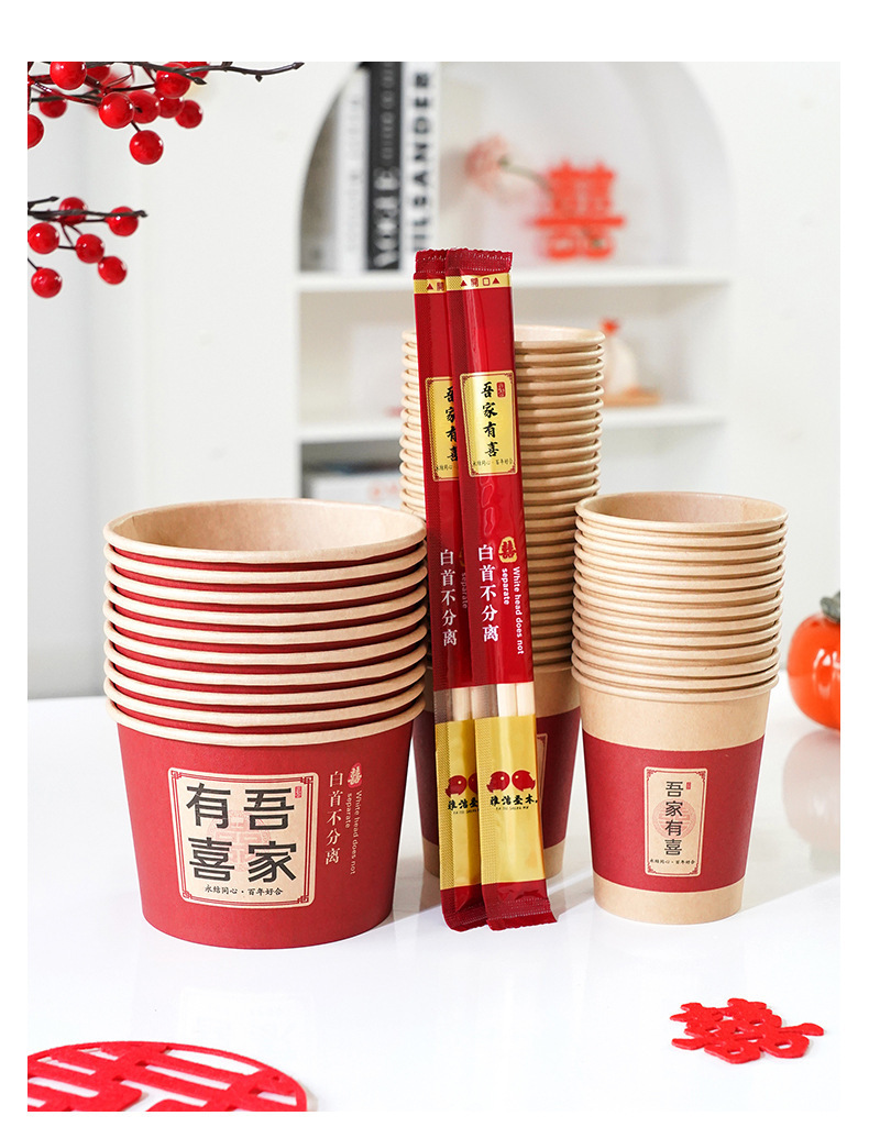 結婚使い捨て紙碗喜碗厚手の赤い丸い結婚式の酒席の食器と箸の披露宴用紙コップの食器セット